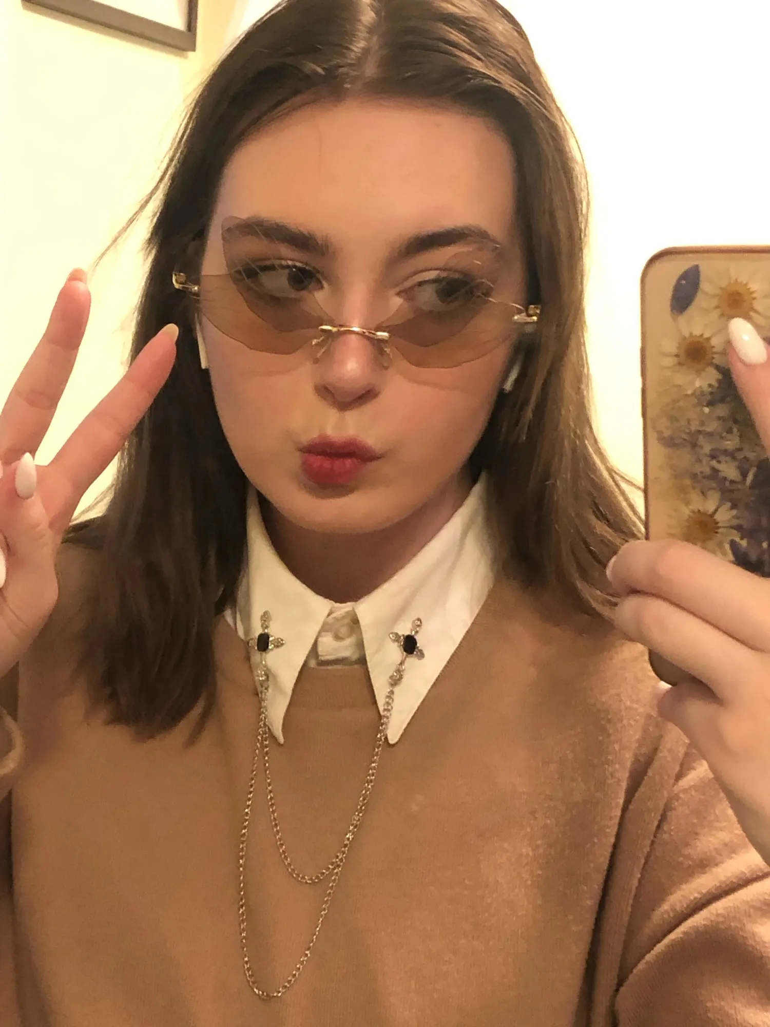 Увидела такие очки у какой-то корейской тик-токерши и не смогла удержаться , не купив. Несмотря на то, что оправа - пластик , выглядят очки довольно необычно. В жизни , наверное, я бы такие не надела ( хотя ... ), но вот для фотосессий, образов каких-то и видео очень даже подойдут . Сделаны очки не плохо , не развалятся при первой носке. Покупкой довольна