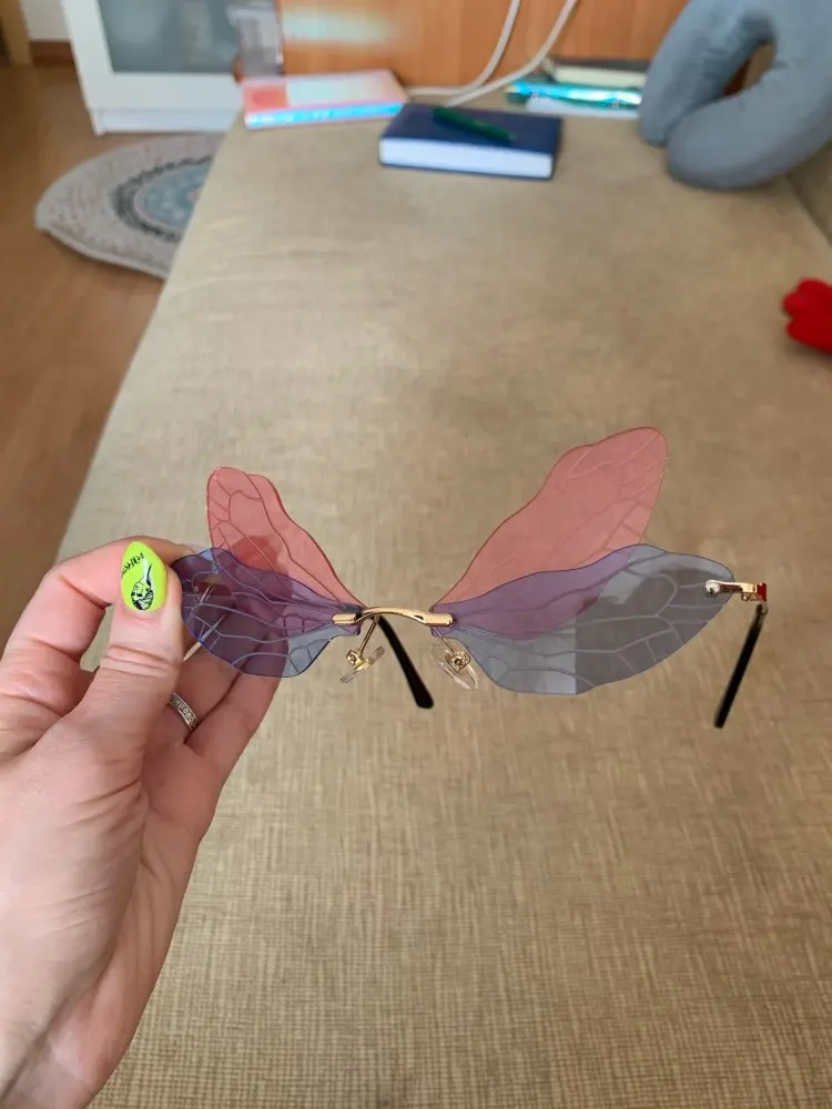 Красивые стрекозиные крылышки! Теперь уже для следующего лета. Спасибо! На удивление дошли без повреждений. Три пары очков были положены в обычный пакетик каждые и упакованы в тонкий мягкий почтовый пакет. Просто повезло, что не погнулись и не поломались.