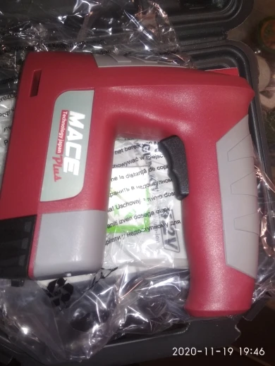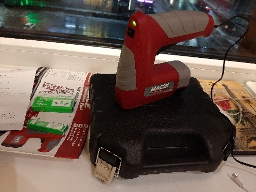 Рекомендую. Товар пришел в кейсе, со скобами и гвоздями! Размер скоб до 10 мм. В дерево забивает полностью, в ДСП пока не пробовал, но удар хороший.