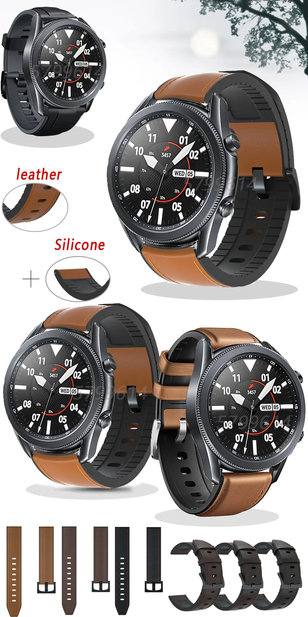 Ремешок силиконовый для Samsung Galaxy Watch 3, браслет из натуральной кожи для наручных часов Samsung Galaxy Watch 3 41 45 мм