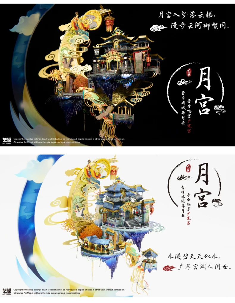 Металлический 3D-пазл MU Луна, модель дворца, наборы для сборки своими руками, лазерная вырезка, строительная игрушка, строительные игрушки для детей