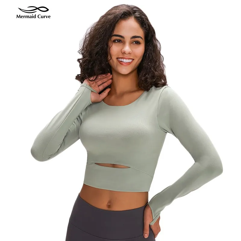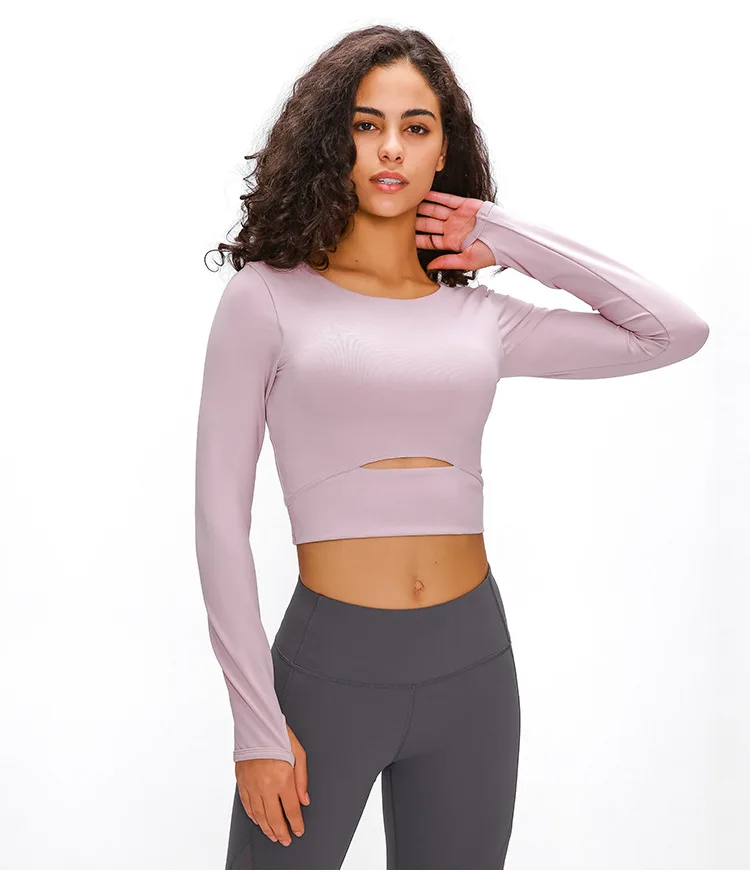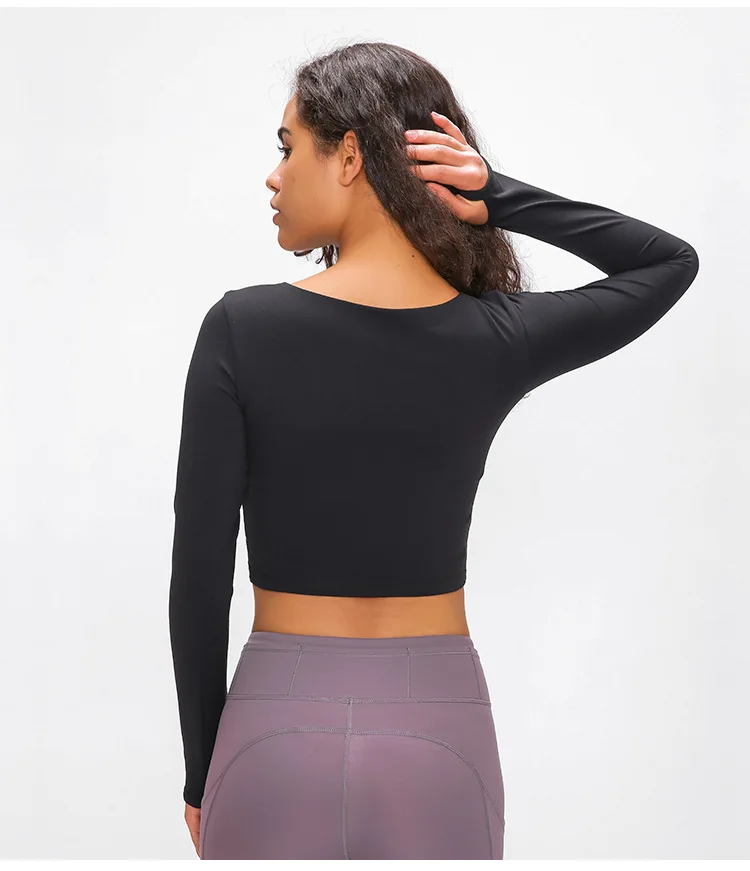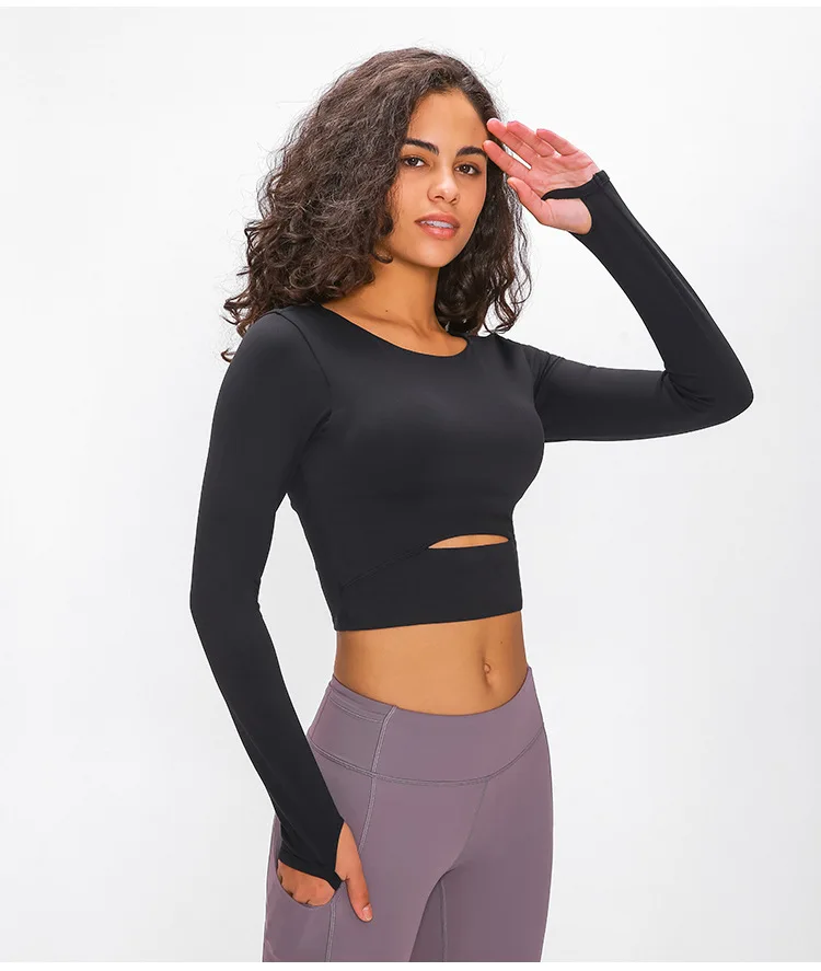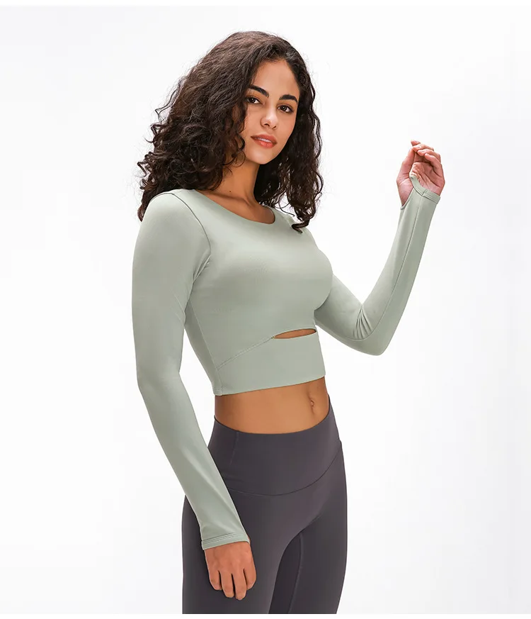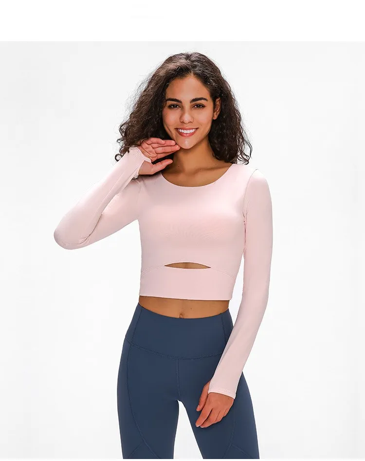 Женская рубашка для йоги со съемной подкладкой, облегающий кроп-Топ с длинным рукавом, футболки для йоги, легкий тонкий Топ