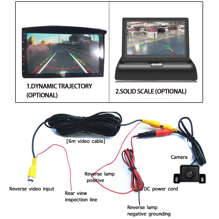 1 * CCD Автомобильная камера заднего вида1*6 м видео кабель1 * кабель питания1 * Руководство пользователя1 * бесплатный инструмент для установки, рокер