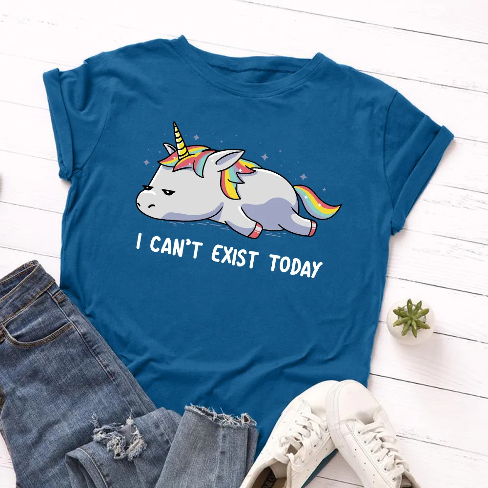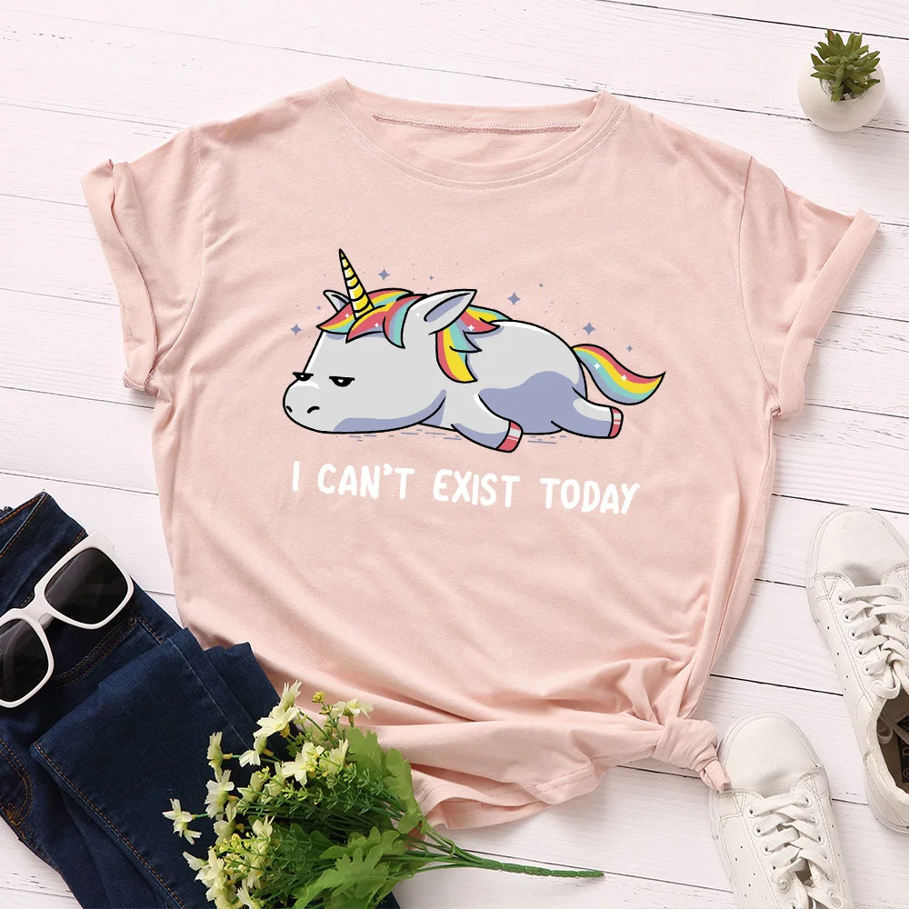 Женская летняя футболка с забавным принтом единорога, 2020, хлопковые футболки с мультяшным графическим рисунком, футболка в стиле Харадзюку, женские топы, Корейская одежда