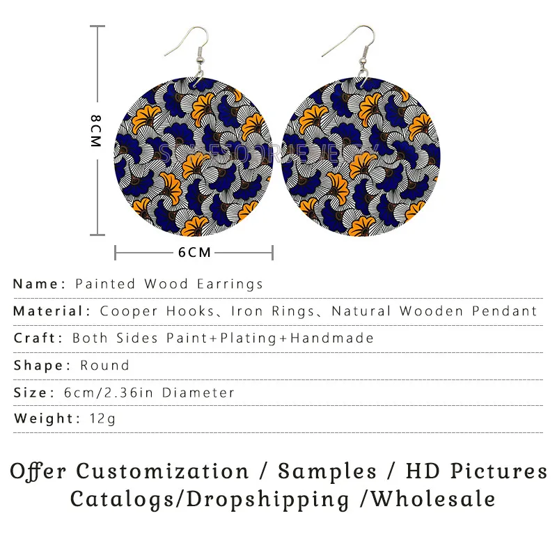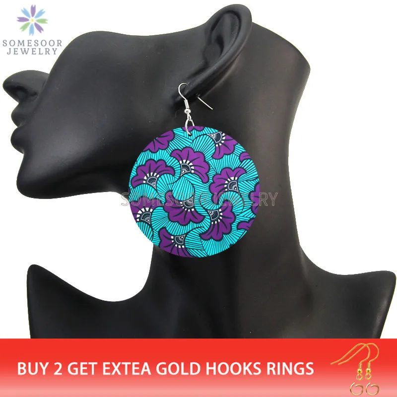 SOMESOOR напечатаны большие обручи женские афро деревянные висячие ...