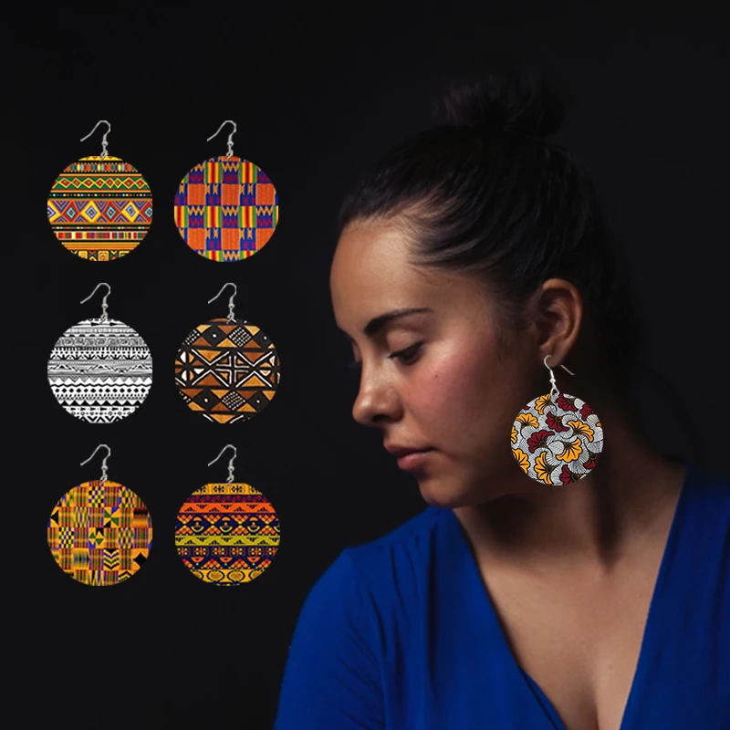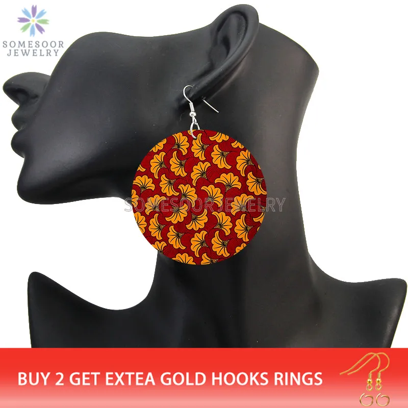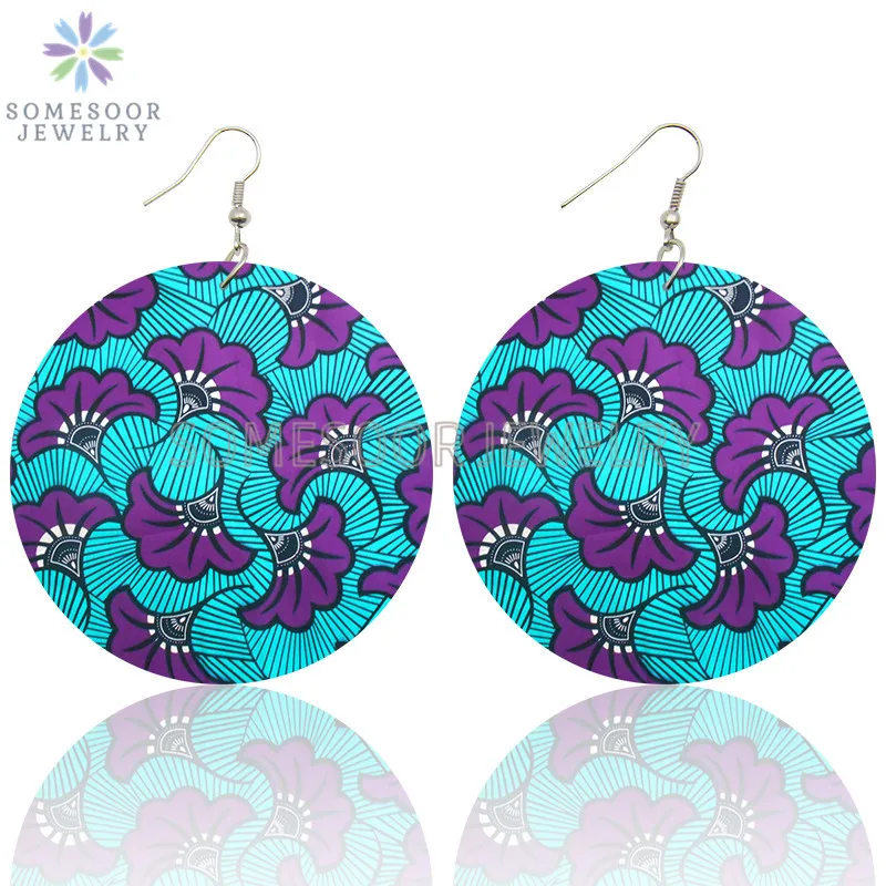 SOMESOOR afroцентрические висячие серьги с рисунком ткани, деревянные висячие серьги, богемные этнические петли, висячие серьги для женщин, подарки