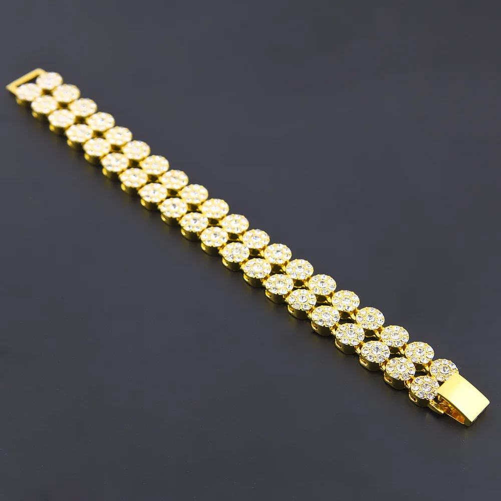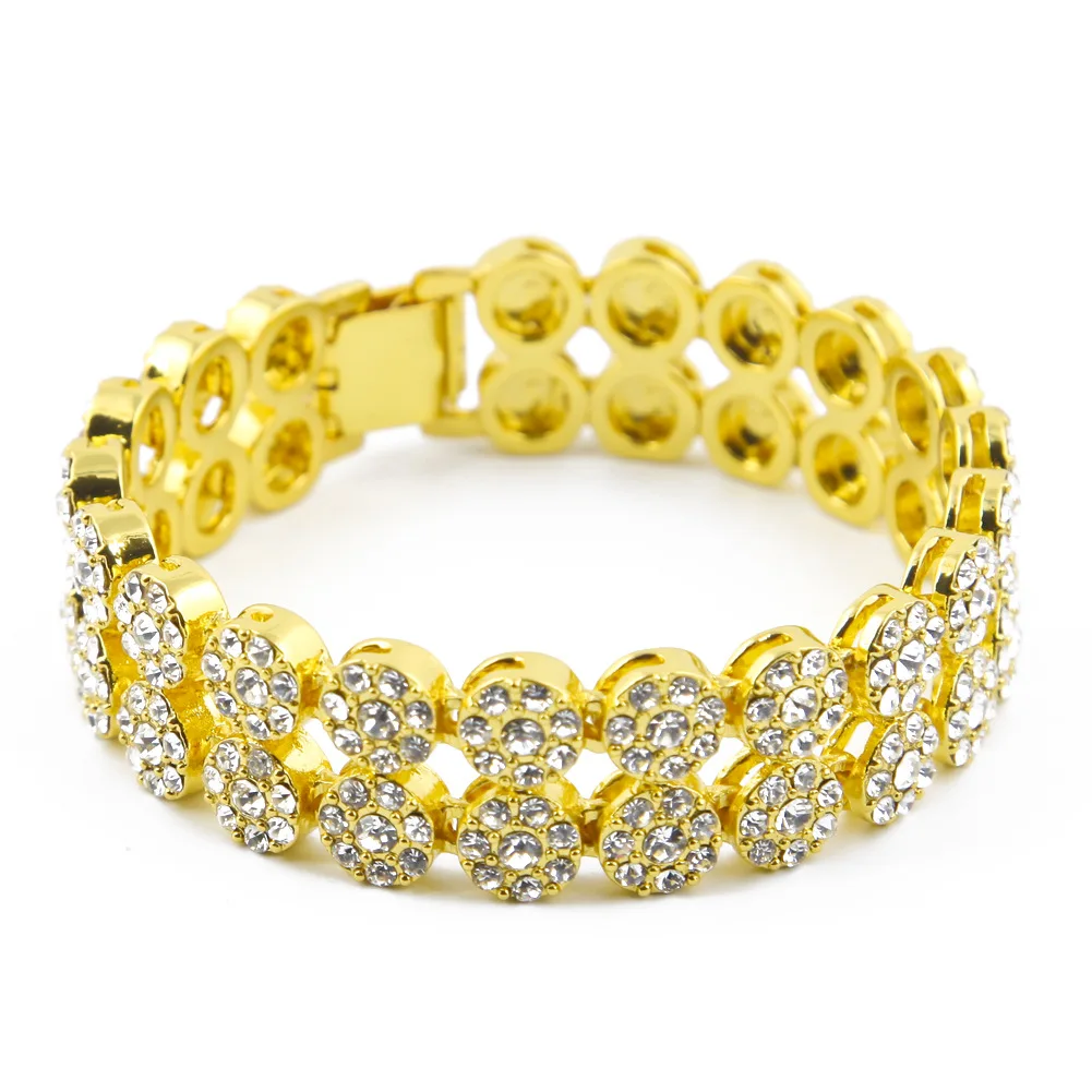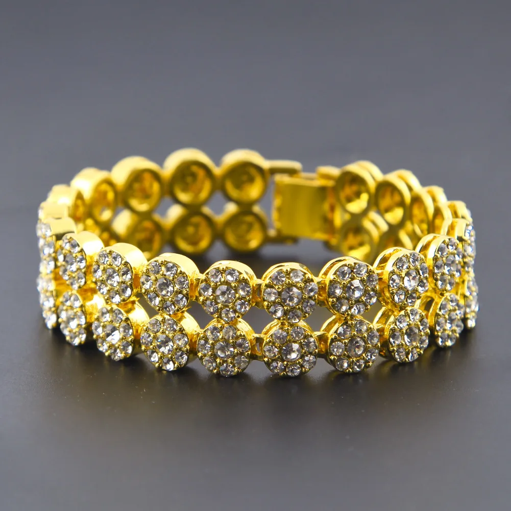 MOFLO Полный Бриллиант 2 ряда Круглый браслет европейские и американские позолоченные сверкающие популярные мужские браслеты в стиле хип-хоп