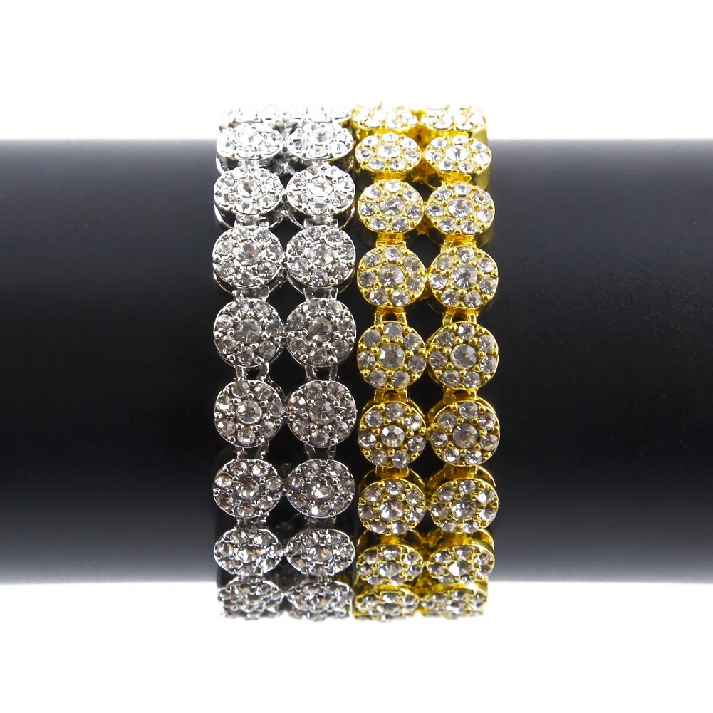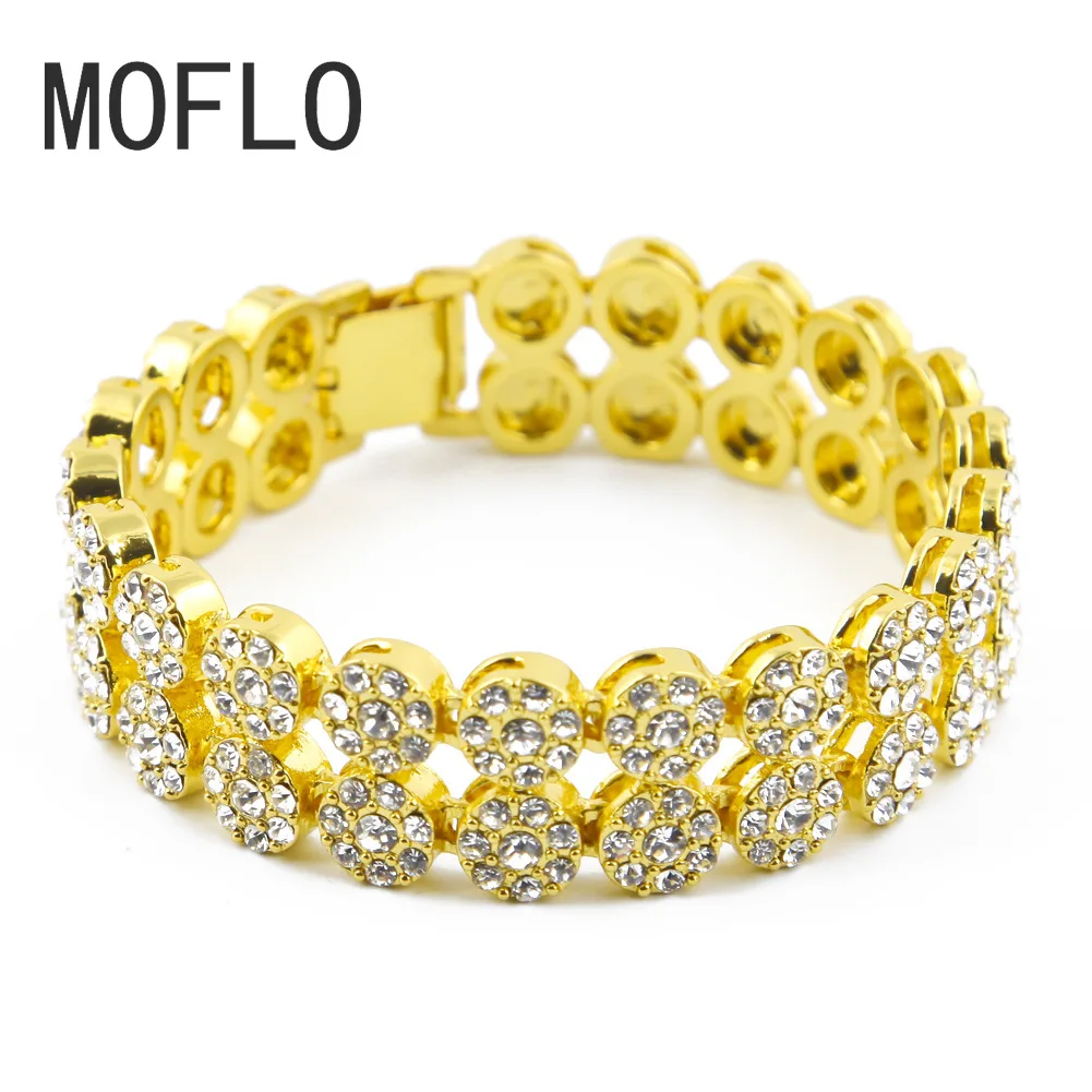 MOFLO полными бриллиантами 2 ряда Круглый браслет европейский и американский позолоченный шикарный Iced Out популярный хип-хоп мужской браслет