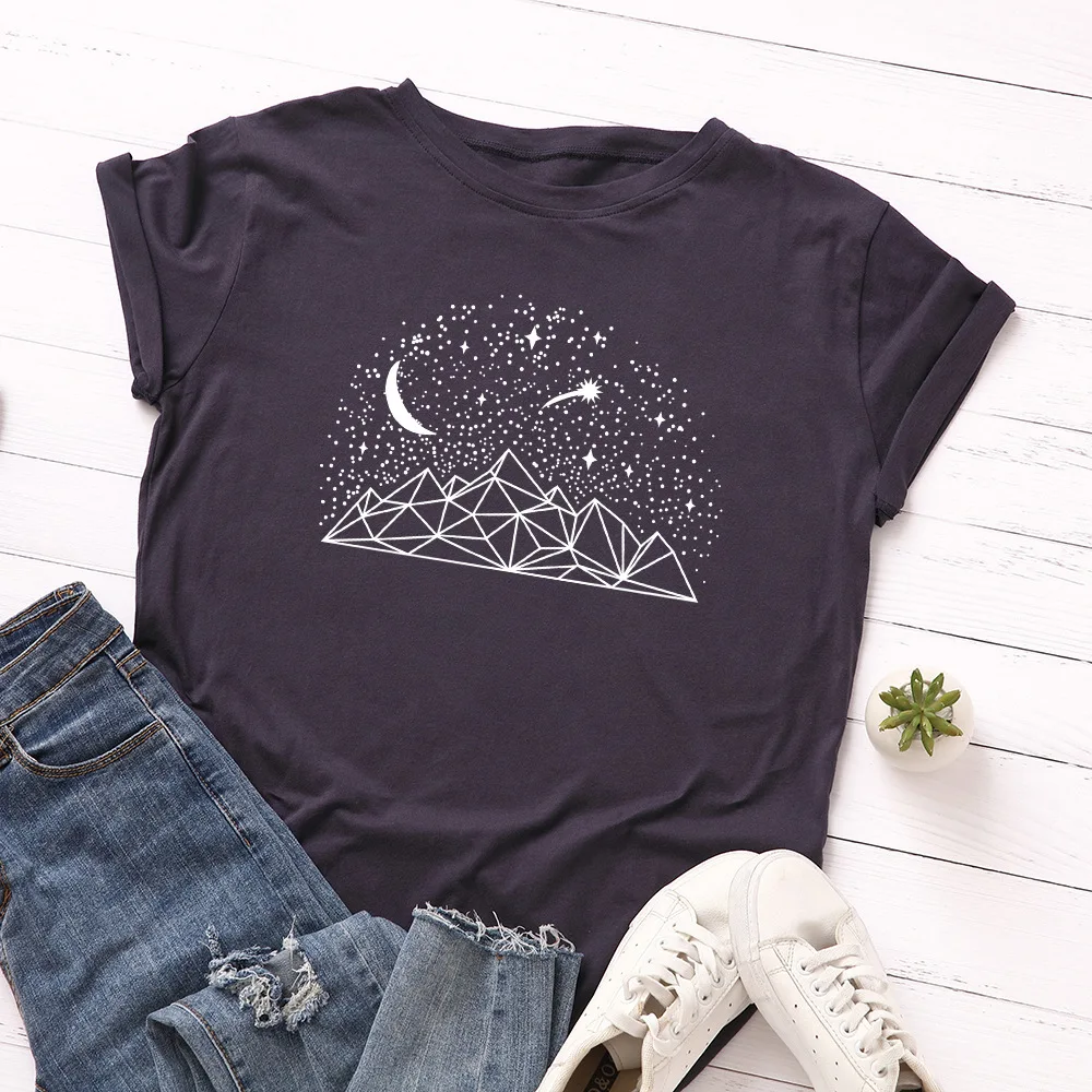 Футболка женская хлопковая оверсайз, с принтом звездного неба