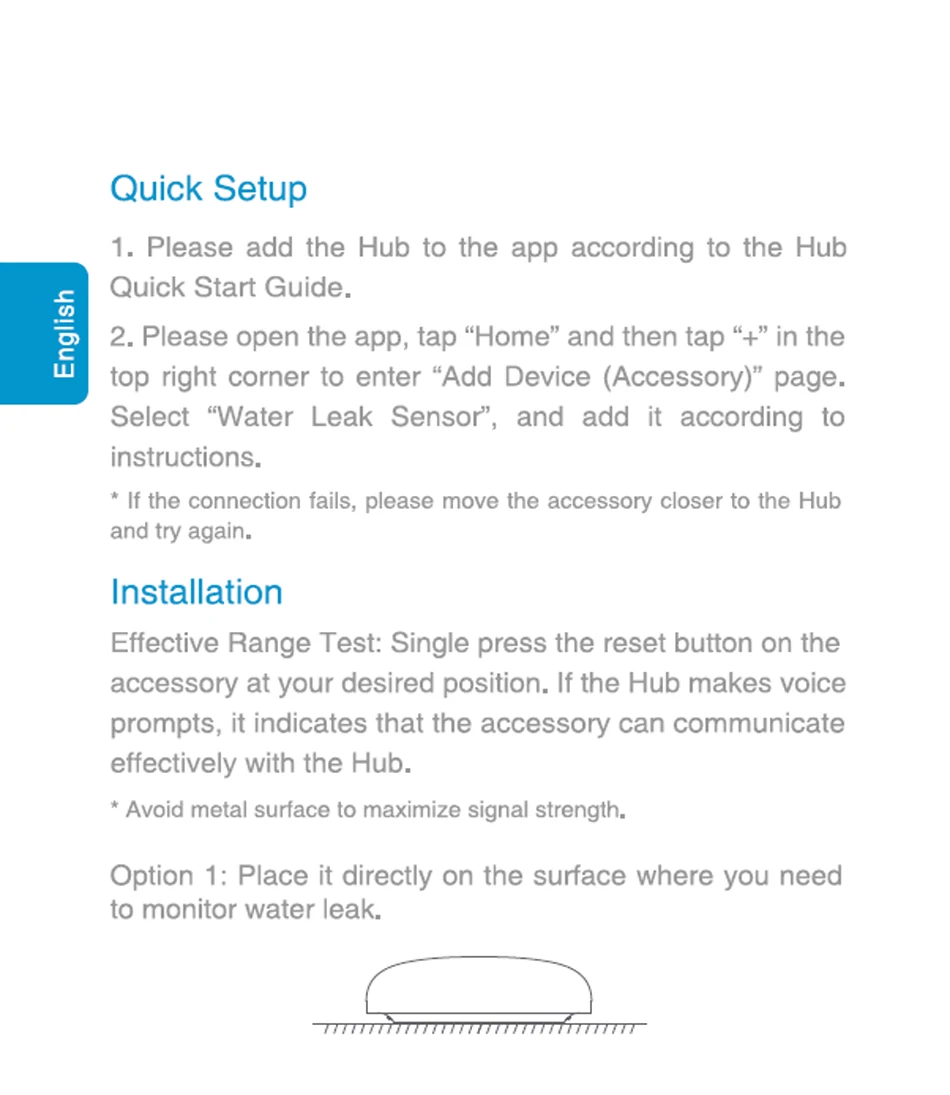 Когда уровень воды достигает до 0,5 мм, утечки воды Сенсор вызовет концентратор к издавать звуковой сигнал и отправит уведомление на ваш телефон.