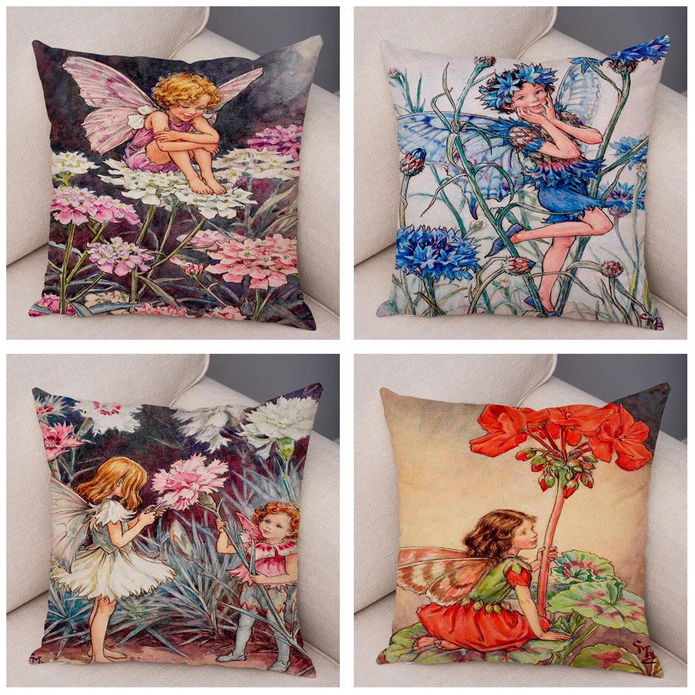 Разноцветная сказочная наволочка с изображением эльфов, милый мультяшный цветочный чехол для подушки, чехол для дивана, домашний наволочка из полиэстера чехол