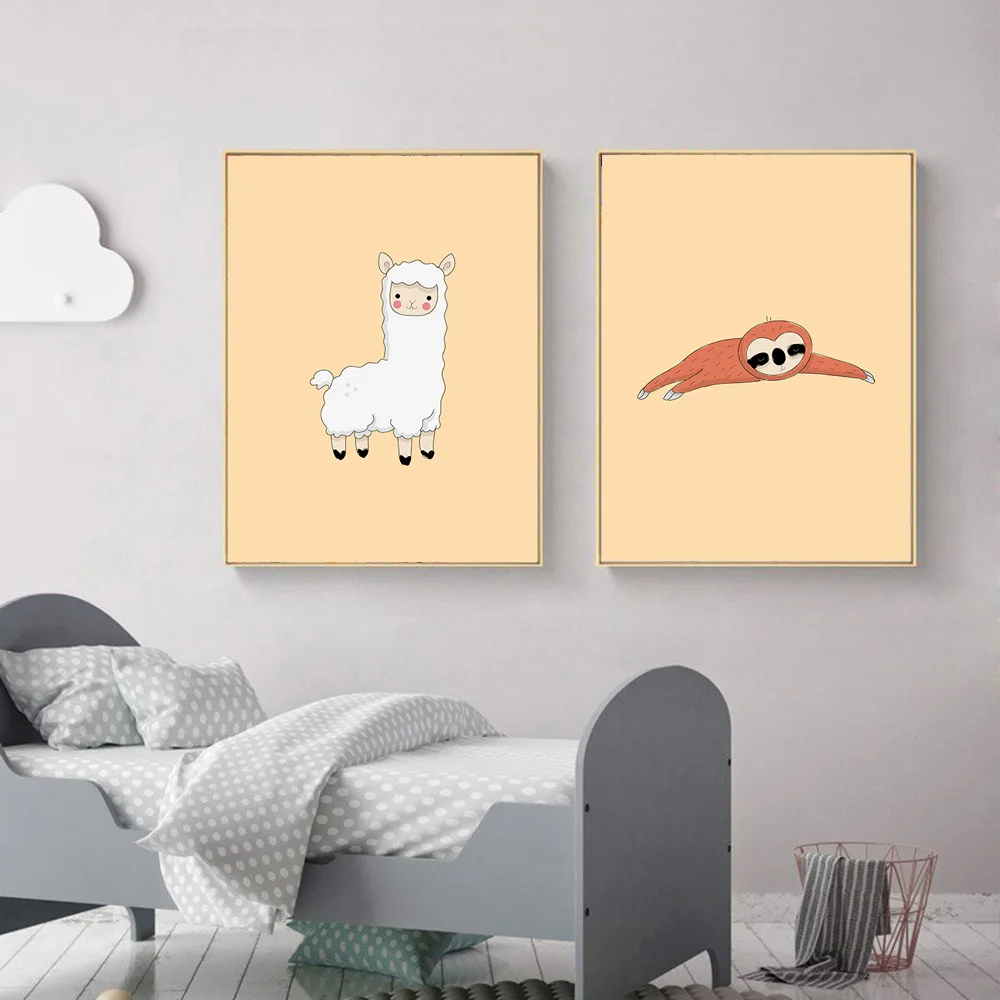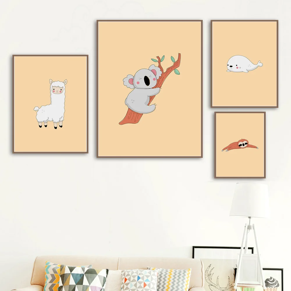 Kawaii ручная роспись животных плакаты и принты Koala Ленивец Альпака настенная Картина на холсте настенные картины детская комната Домашний декор