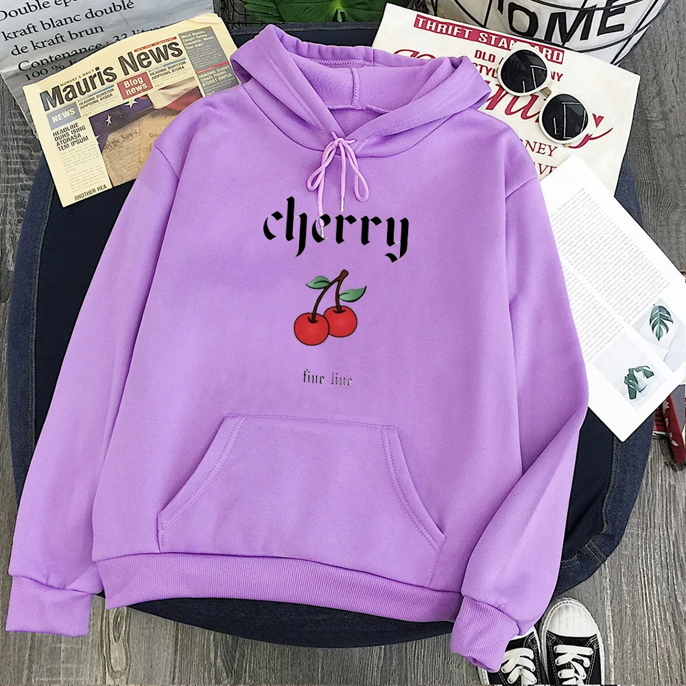 Вишни толстовки с винтажным принтом 2020 повседневные Пуловеры винтажная Женская размера плюс больших размеров с капюшоном