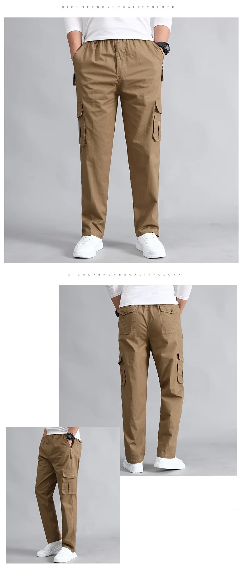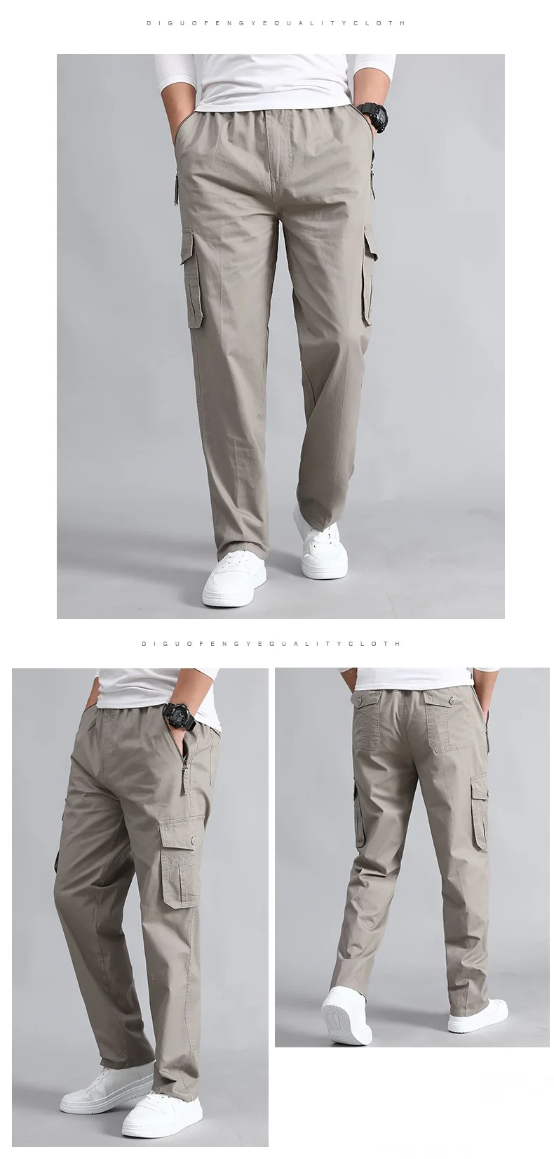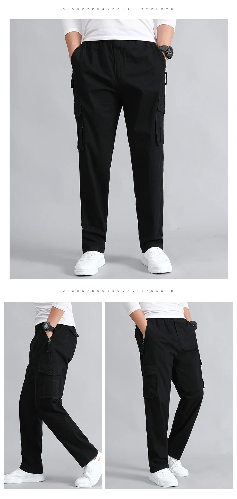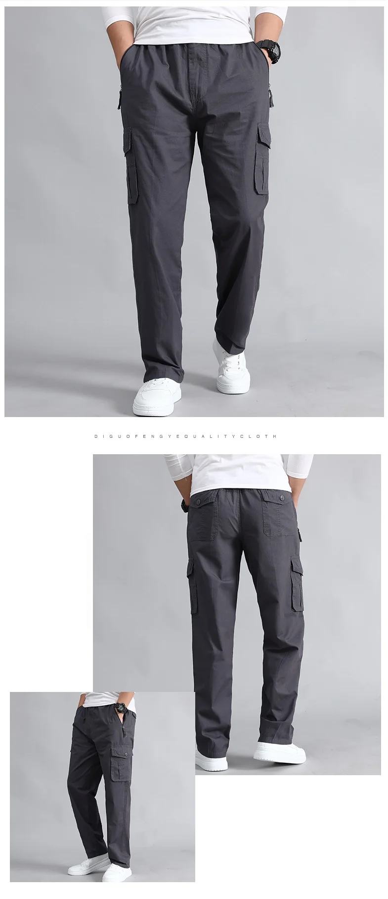 Брюки мужские хлопковые повседневные, много карманов, эластичная талия, длинные брюки-карго, спортивные штаны, большие размеры 5XL
