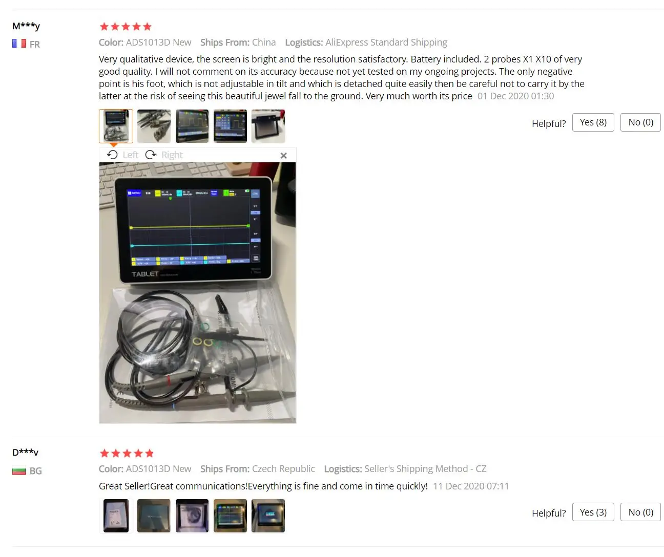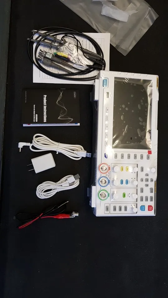 Особенности:Интеллектуальная защита от ожогов, 1X Выдерживает напряжение до 400 В.100 МГц аналоговая полоса пропускания @ 1GSa/s частота дискретизации (1X = 5 МГц, 10X = 100 МГц).Полностью подходит для 7 дюймов 800*480 цветной TFT ЖК-дисплей с яркими цветами и высокой контрастностью.Емкостный сенсорный экран, такой же, как и Сенсорный режим современного мобильного планшета, не является резистивным сенсорным экраном с древней операцией ногтей.Диапазон высокого напряжения, 1x может измерить 0 ~ 40 В, 10x может измерить 0 ~ 400 В, 100x может измерить 0 ~ 4000 в.До 12 параметров измерения: VPP,VP,Vmax,Vmin,Vavg,Vrms, частые, Duty +,Duty-,Time +,Time-,Period.Функция измерения курсора, удобно вручную измерять период, частоту и напряжение.Полная функция запуска (одиночная, нормальная, автоматическая).В любое время дисплей формы волны (Функция паузы) заморожен.Оснащен высокой эффективностью одной кнопкой авто.Одна кнопка хранения сигналов и скриншот.Встроенная память объемом 1 ГБ позволяет хранить до 1000 скриншотов + 1000 наборов данных волноводной формы.Мощный Графический менеджер поддерживает просмотр эскизов, просмотр, Детальный просмотр, поворот страницы, удаление и масштабирование формы волны, масштабирование, перемещение и т. Д.Оснащен интерфейсом USB, который может быть подключен к компьютеру, чтобы поделиться скриншотами с компьютером, что удобно для вторичного анализа.Функция графического дисплея Lissajous может использоваться для определения амплитуды, частоты и фазового контраста двух групп сигналов.Функция отображения FFT, может анализировать Спектральные характеристики сигнала.Встроенный перезаряжаемый литиевый аккумулятор емкостью 6000 мАч, полностью заряжен в течение 4 часов непрерывного использования при максимальной яркости экрана.Технология сжатия памяти, экран обновления формы волны не мерцает.Регулировка яркости экрана.Регулировка яркости фоновой сетки.Ультратонкий, легко носить с собой. Характеристики:Материал: АБС-пластикЦвет: черный + белыйШирина аналогового ремешка: 100 МГц * 2Количество каналов: 2 каналаМаксимальная частота дискретизации в реальном времени: 1GSa/sВертикальная чувствительность: 50 мВ/див ~ 500 В/ДивГоризонтальный диапазон времени: 50S/div ~ 10NS/divМаксимальное тестовое напряжение: 40 В (1X зонд), 400 В (10X зонд)Глубина хранения: 240 кбитВходное сопротивление: 1 мТочность ADC: 8 битРежим соединения: AC/DCРежим запуска: одиночный, нормальный, автоматическийКромка триггера: поднимающаяся кромка/опускающаяся кромкаНапряжение внешнего триггера: 0 ~ 40 вДисплей: 7 дюймов-800*480Работа: емкостный сенсорный экран + жестыУдлинительные порты: экспорт изображений USBИсточник питания: 1 * литиевая батарея, 6000 мАч (в комплекте)Размер изделия: 184*124*50 мм/7,2*4,9 * 2.0inРазмер посылка: 200*134*60 мм/7,9*5,3 * 2.4inПосылка Вес: 986g / 2.2lb Упаковочный лист:1 * ADS1013D хост осциллографа2 * соответствующий зонд 100 МГц (1X и 10X)1 * USB кабель1 * Руководство пользователя