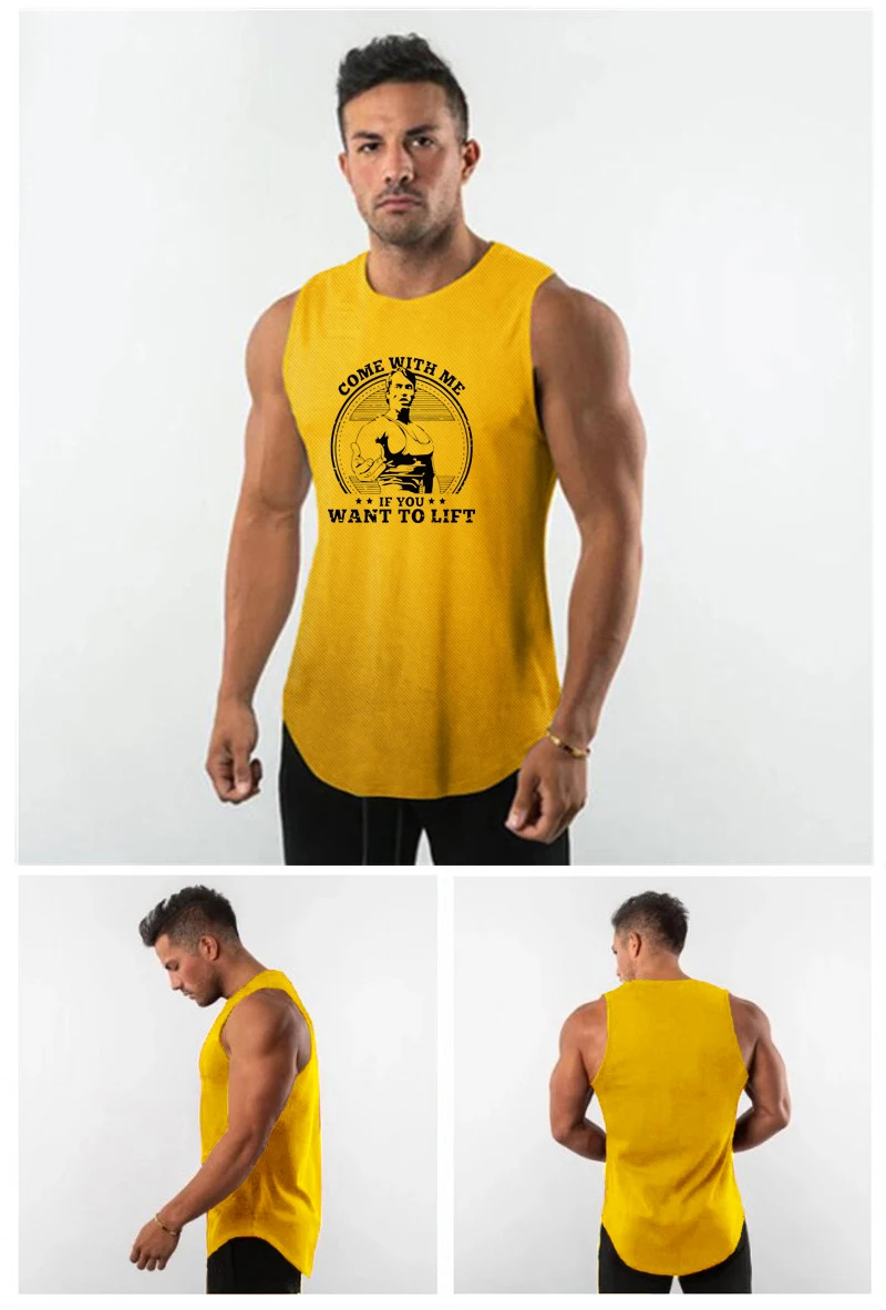 Новинка, летняя одежда для тренировок, тренажерного зала, сетчатая майка, Мужской Быстросохнущий жилет для фитнеса, модная спортивная майка для бодибилдинга и бодибилдинга без рукавов