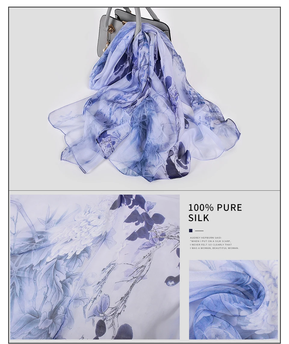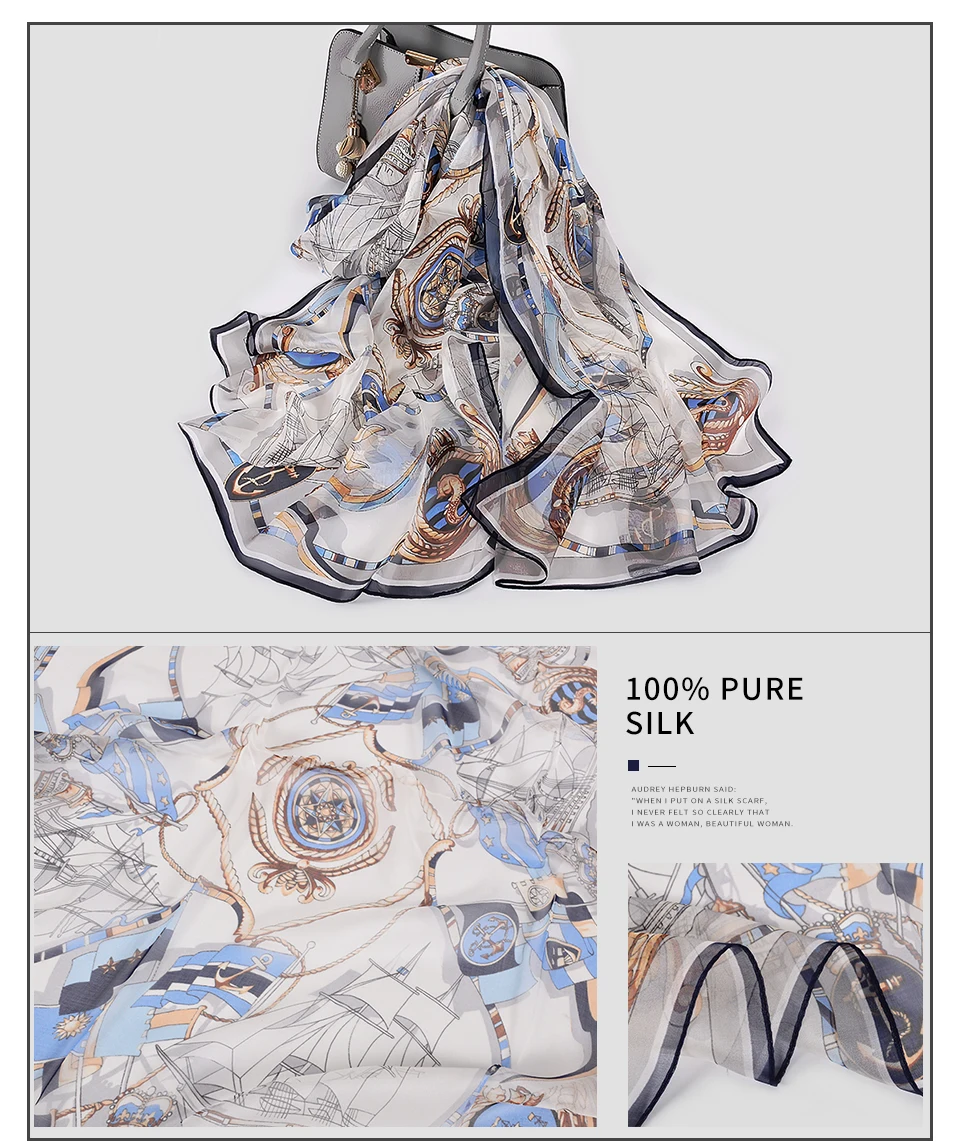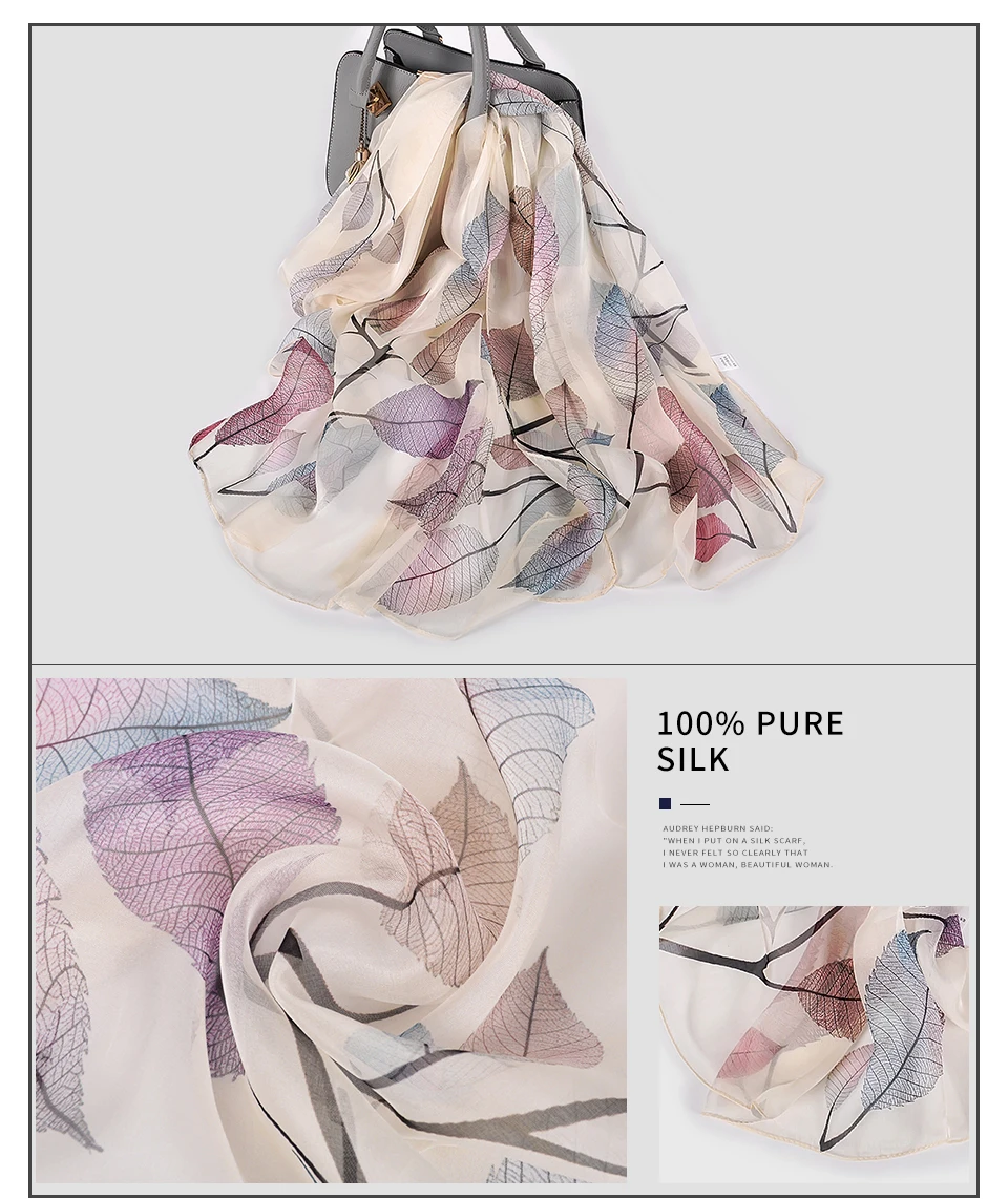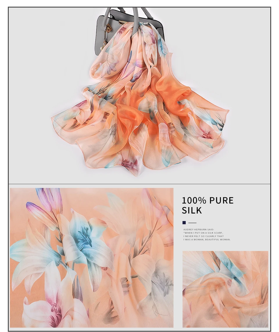 тонкий и приятный к телу шарфик. насчёт натуральности шелка не уверена, но очень скользкий. рисунок только по краям