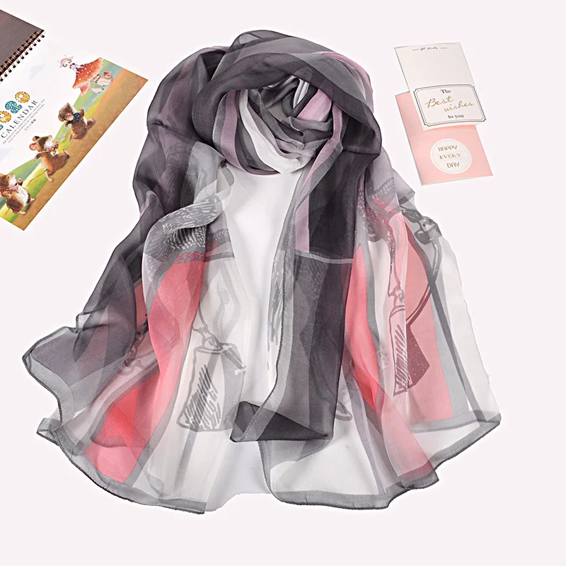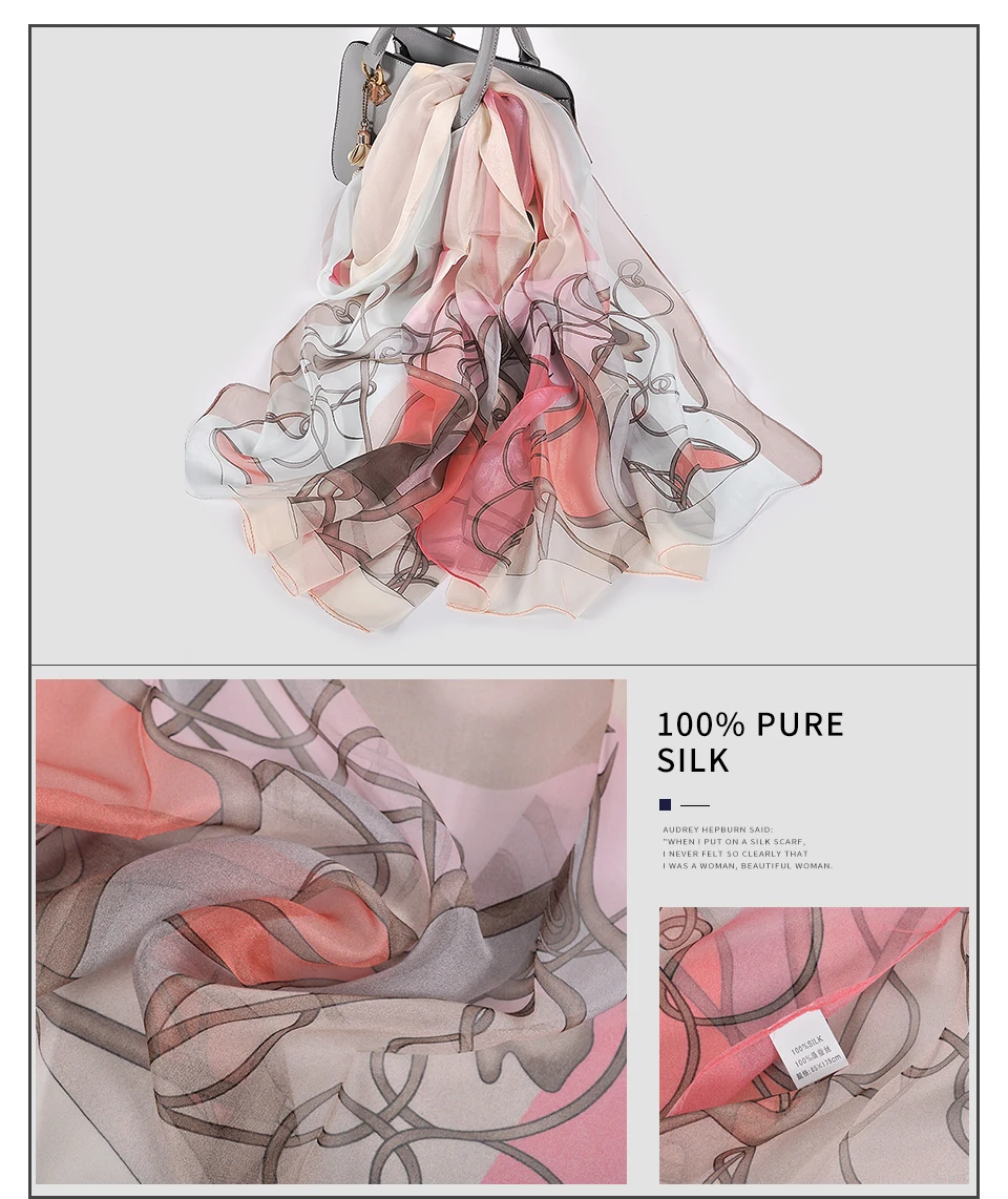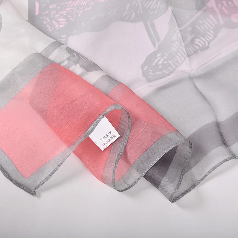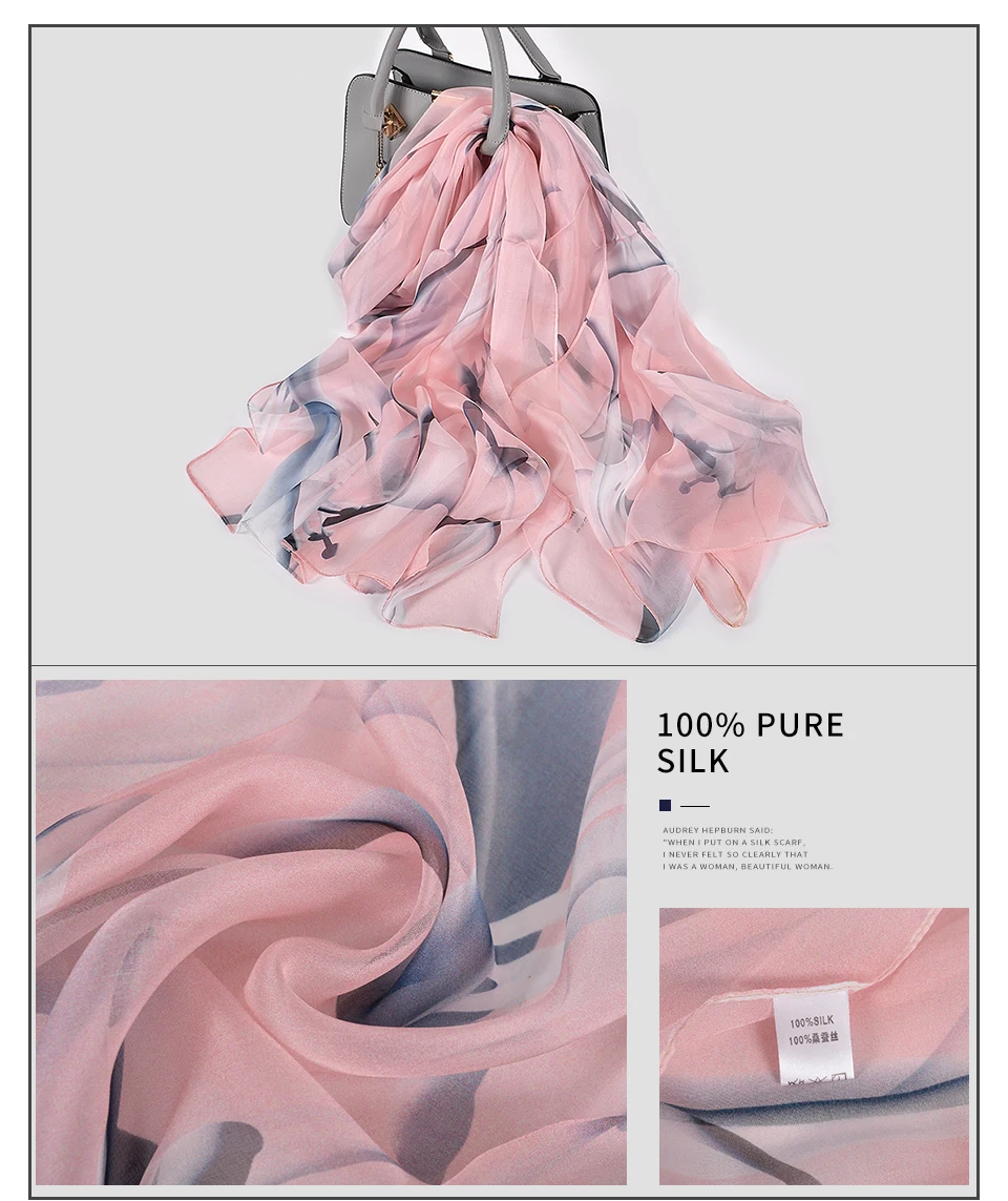 Женский шифоновый шарф с принтом BYSIFA, серый или розовый длинный шарф из натурального шелка 100% * 65 см, осенний, 180
