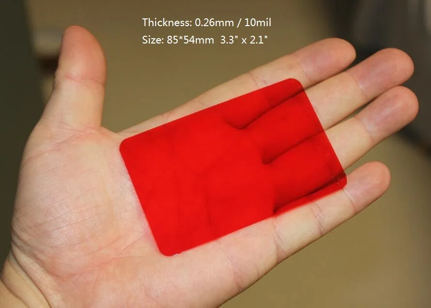 Размер 85*54 мм прозрачный Ацетатный ПВХ лист 260 микрон пустые пластиковые прозрачные красные визитные карточки 102050-вы выбираете количество