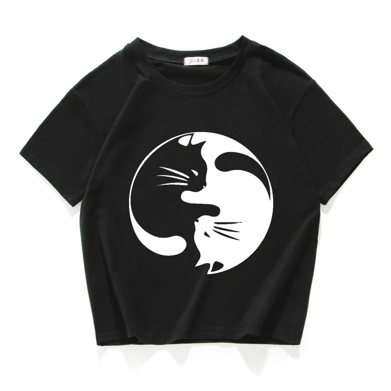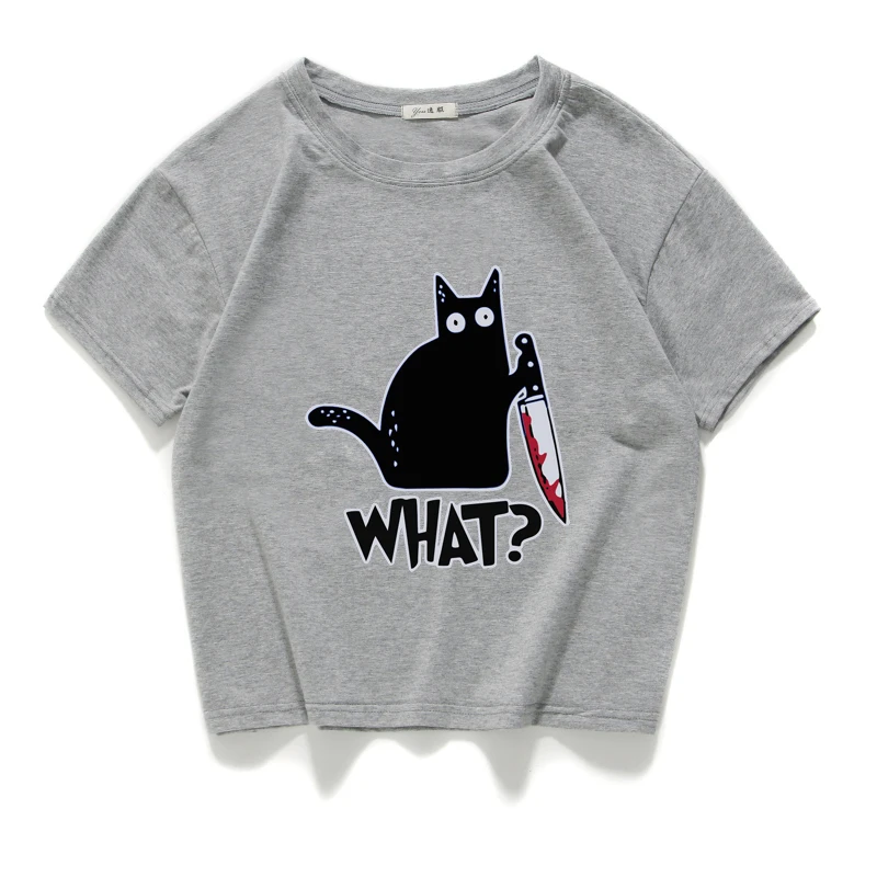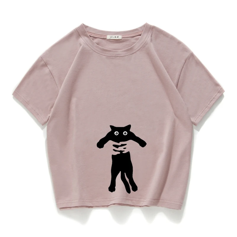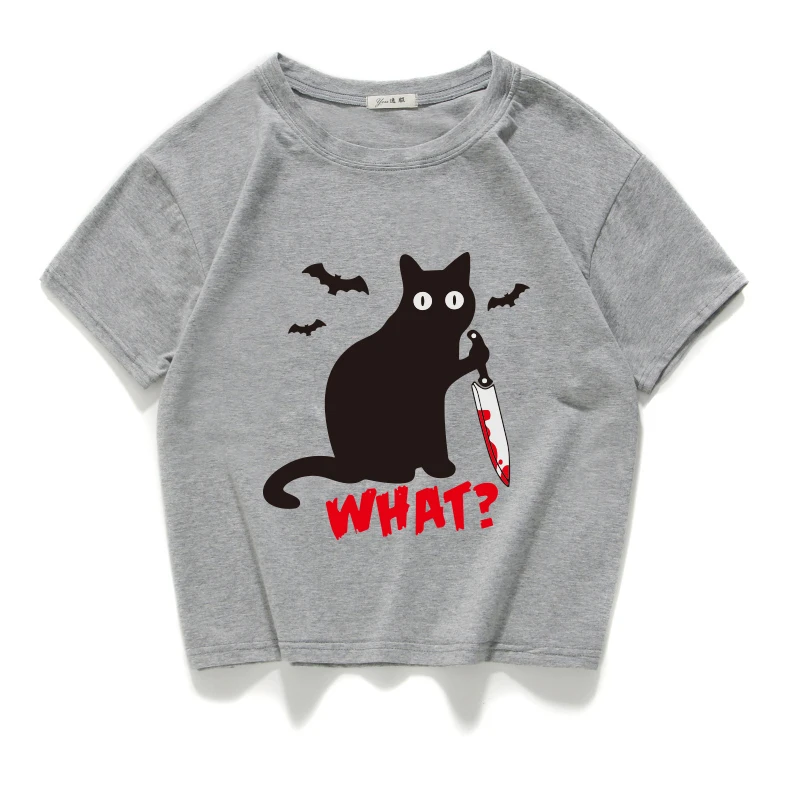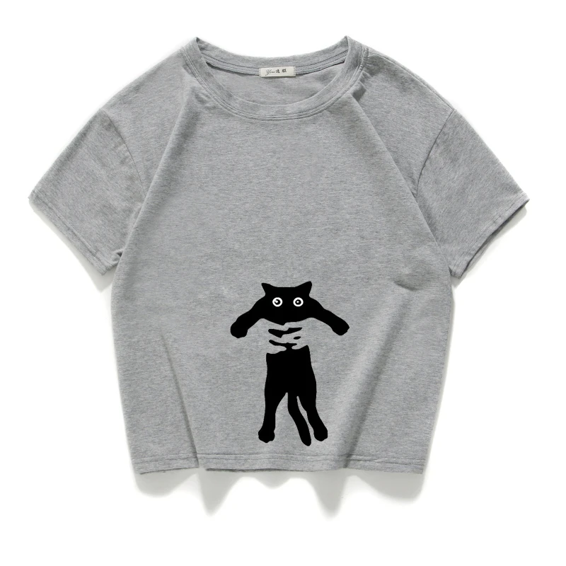 Кроп-топ с черной кошкой, забавная футболка с ножом-убийцей, женская футболка с карманом в виде кошки, топы, футболка, женская одежда, летние женские футболки