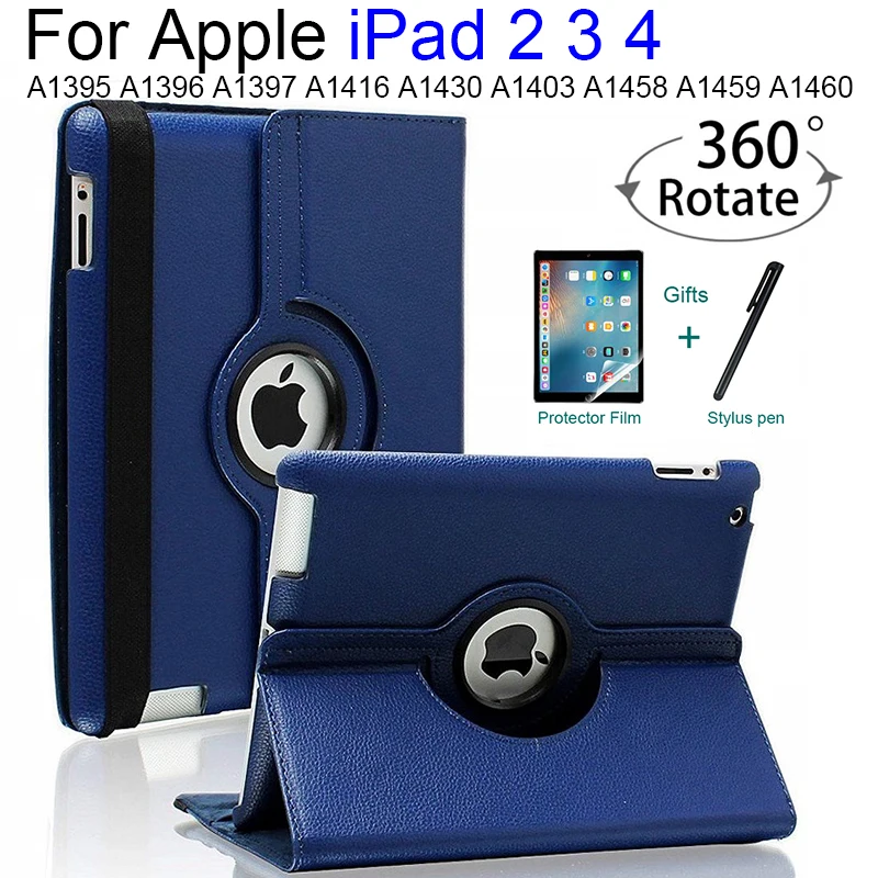 Чехол для iPad 2 3 4, вращающийся на 360 градусов чехол из искусственной кожи для Apple iPad 2 3 4, чехлы-держатели с подставкой, умный планшет A1458 A1459 A1460