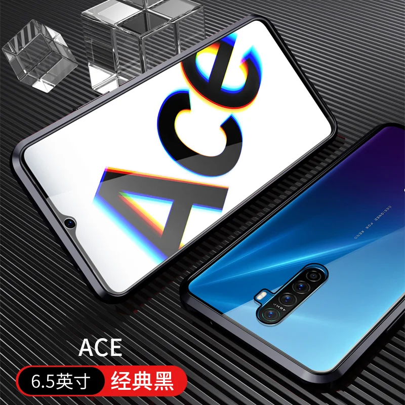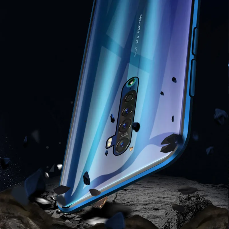 Передний + задний Чехол с двойными бортами прозрачный Стекло Магнитный чехол для OPPO Рино 3 Pro 5G ACE Рено Z Рино 2 2Z 2F Рено 10X зум Классический роскошный металлический корпус чехол