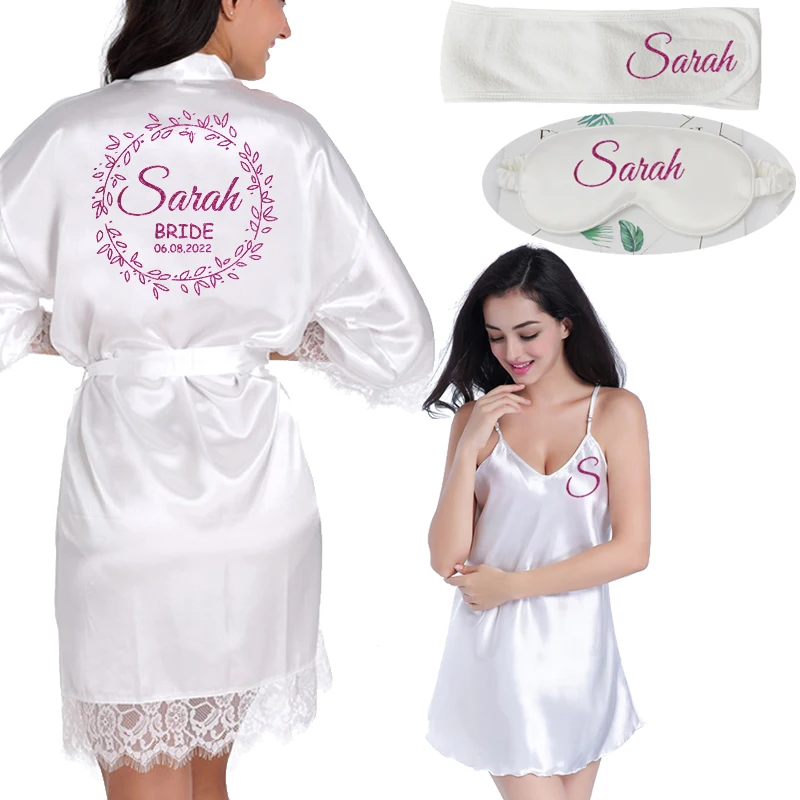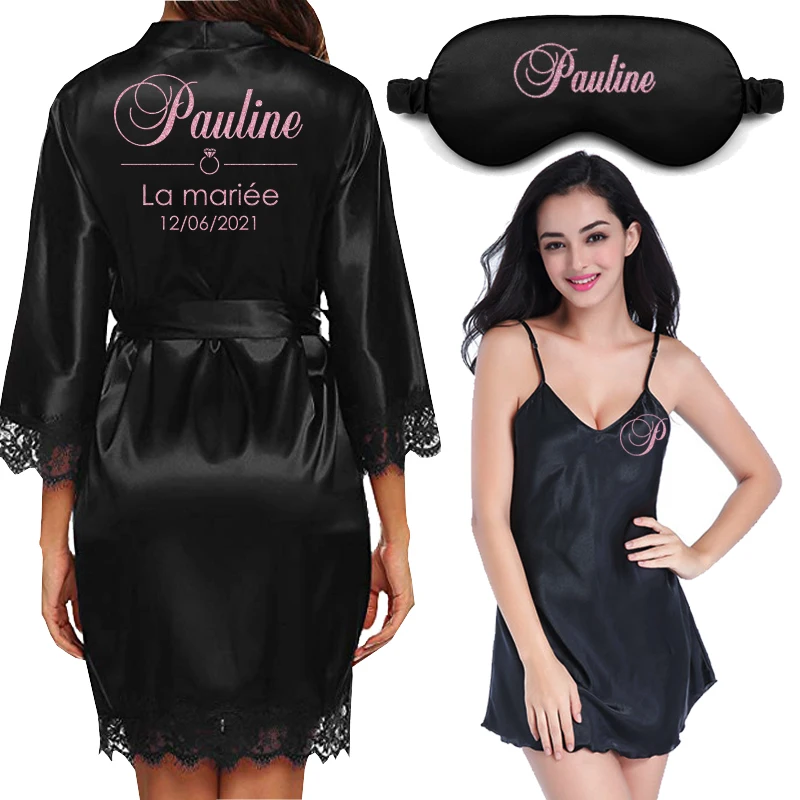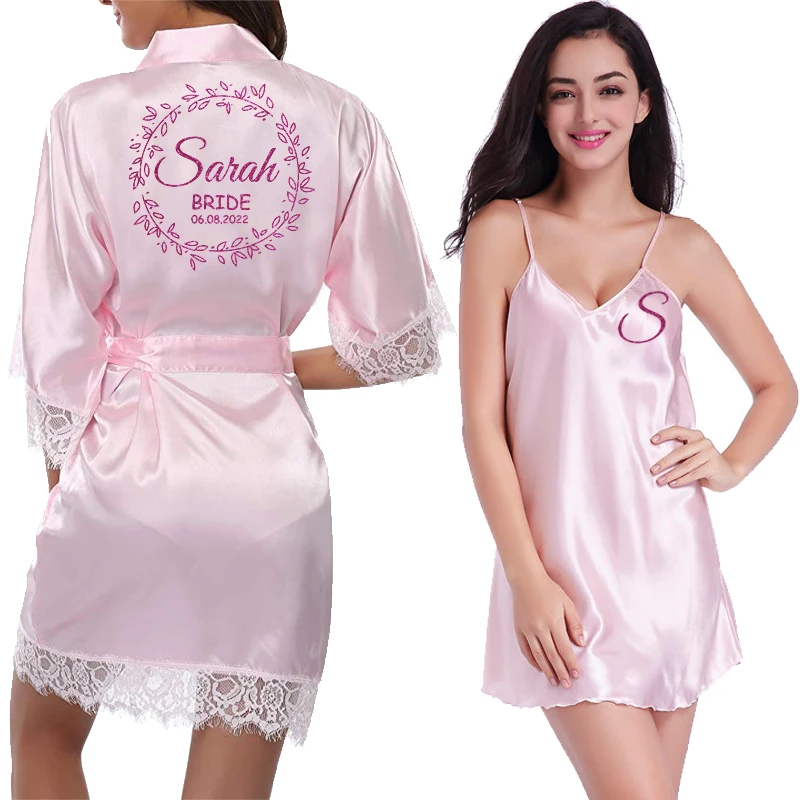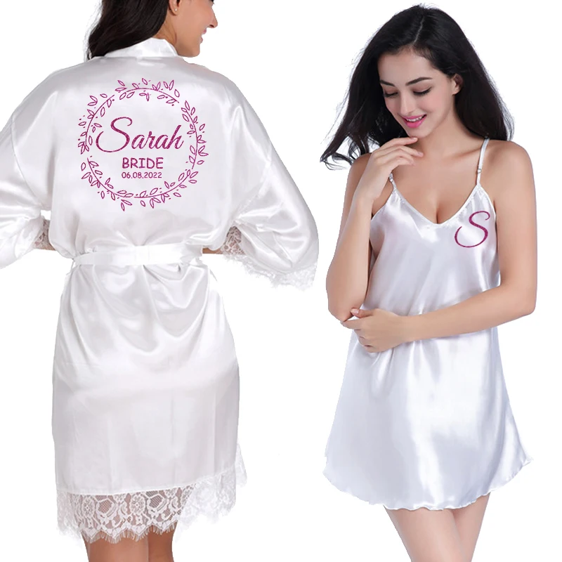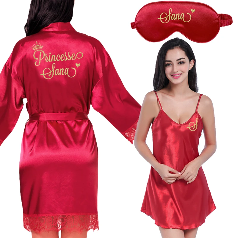 Ночная рубашка Женская атласная, с именем на заказ, комплект из 2 предметов