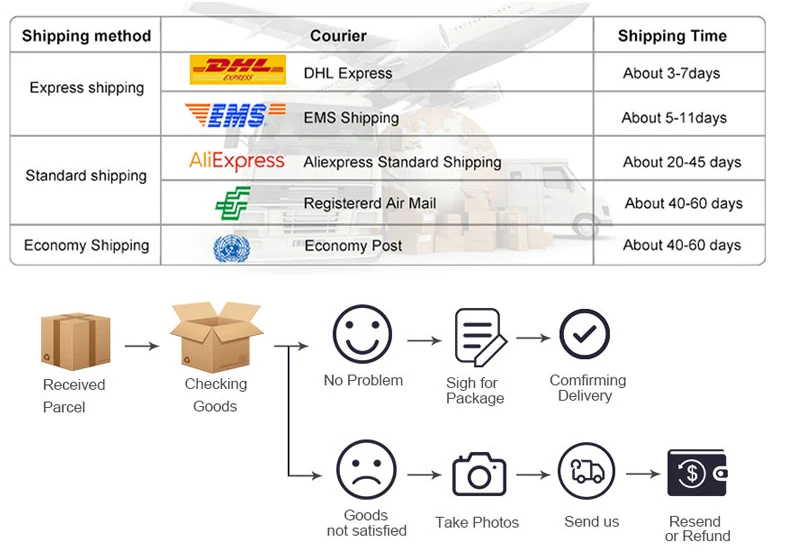 * Ускоренная доставка (AliExpress премиум доставка, EMS, DHL, Fedex,UPS, Aramex и т. Д.) срочно требуется, занимает 3-7 дней (EMS может 15 дней) 2-4 дня больше в жаркие сезоны.