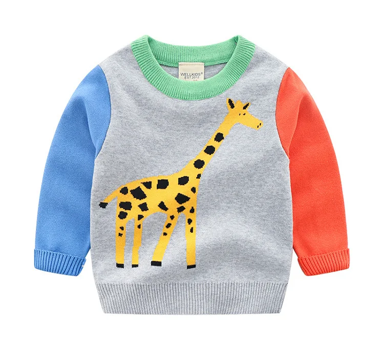 2022 г. Зимний свитер Детская Повседневная Верхняя одежда для маленьких мальчиков, с рисунком животных, с длинными рукавами, с круглым вырезом, теплая детская одежда, пуловер, топы