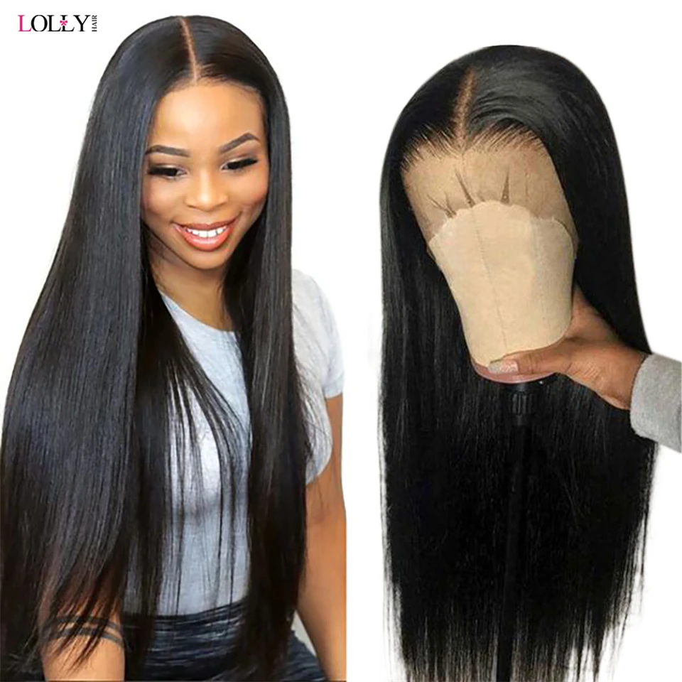 Парик длинный прямой 28 30 32 34 бразильские человеческие волосы на фронтальной сетке парики для чернокожих женщин Т-образный парик на сетке предварительно выщипанные Человеческие волосы Remy Lolly Hair