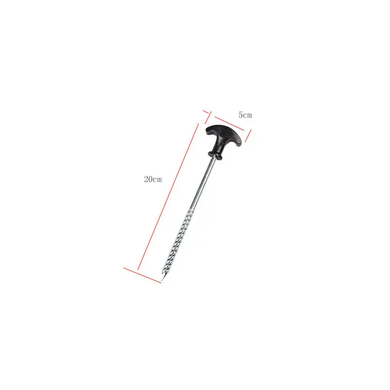 Название продукта: не ржавеющие спиральные Т-образные напольные гвозди для палатки Характеристики: ширина 5 см длина 20 см Вес: 66,7 г Размер упаковки: 9*1*30 см Материал: оцинкованное железо Цвет: серебристый Преимущества: без ржавчины, легко чистить после использования, можно мыть непосредственно. Материал прочный и не легко сломать. Спиральные длинные и толстые Т-образные ногти, подходят для использования на твердом холодном грунте или льду. Материал прочный и не легко ломается и обладает сильной защитой от ветра.