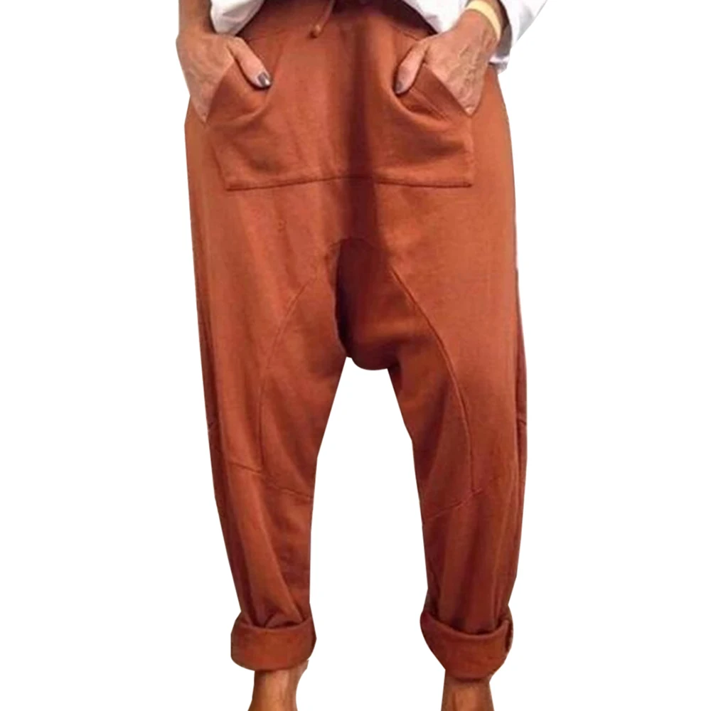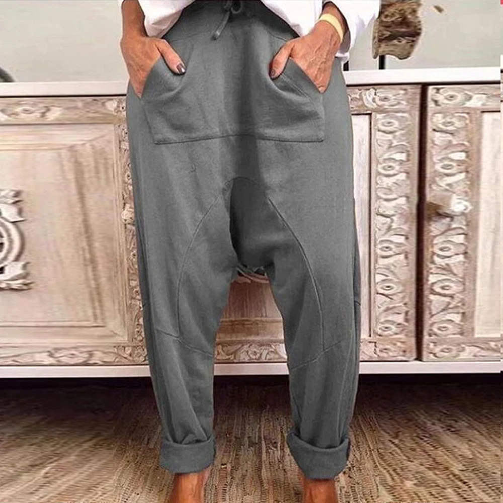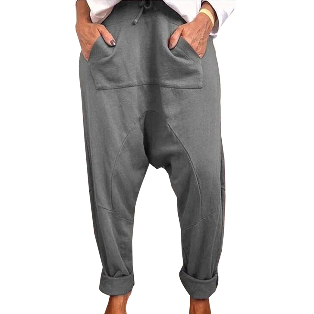 2020 New Fashion Women's Casual Drop Crotch Pants Linen Drape Culottes