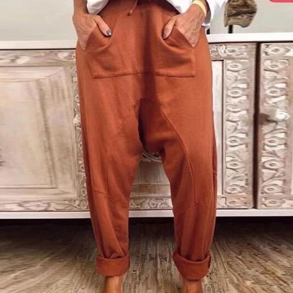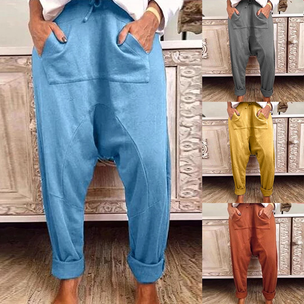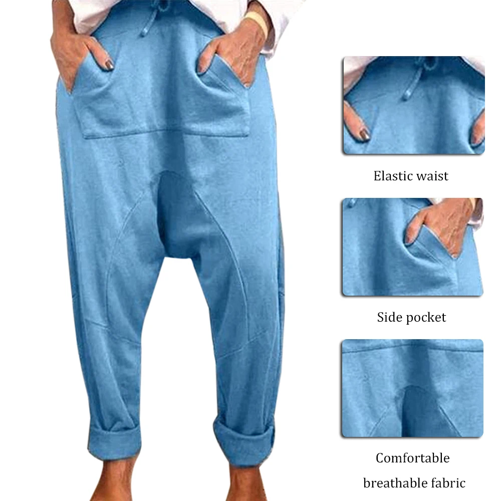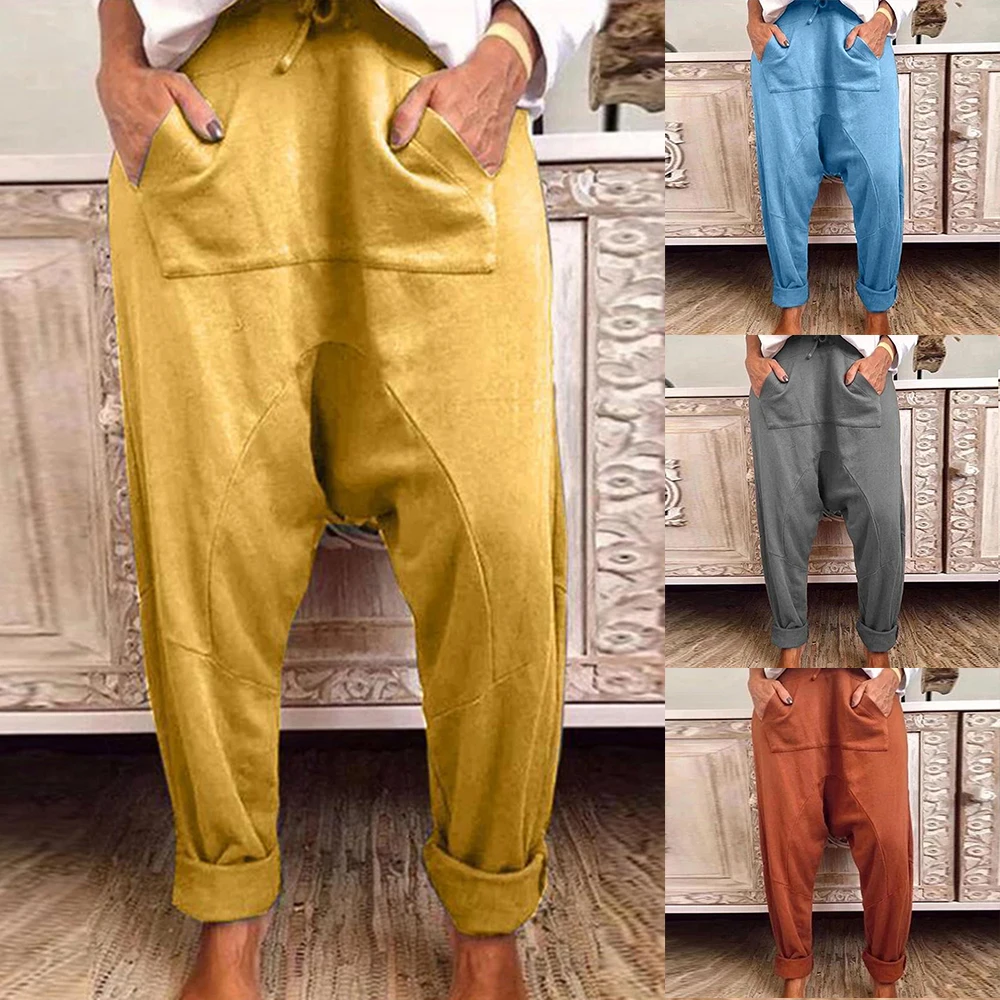 2020 New Fashion Women's Casual Drop Crotch Pants Linen Drape Culottes