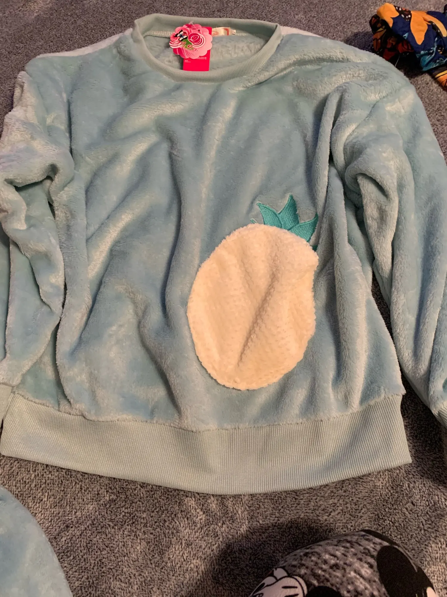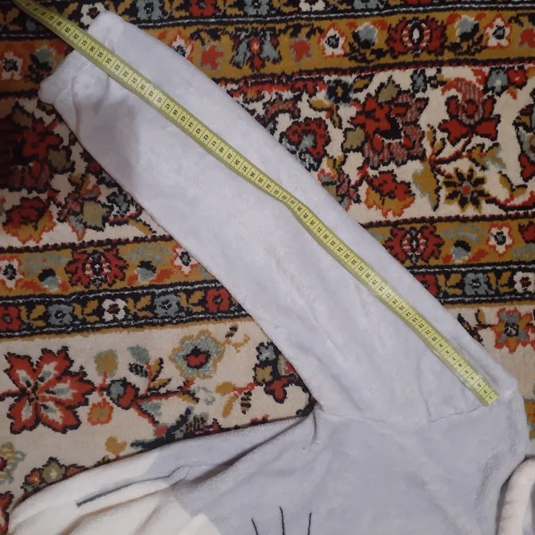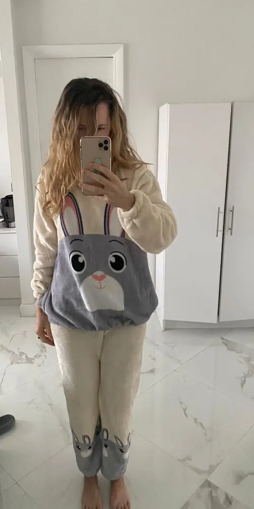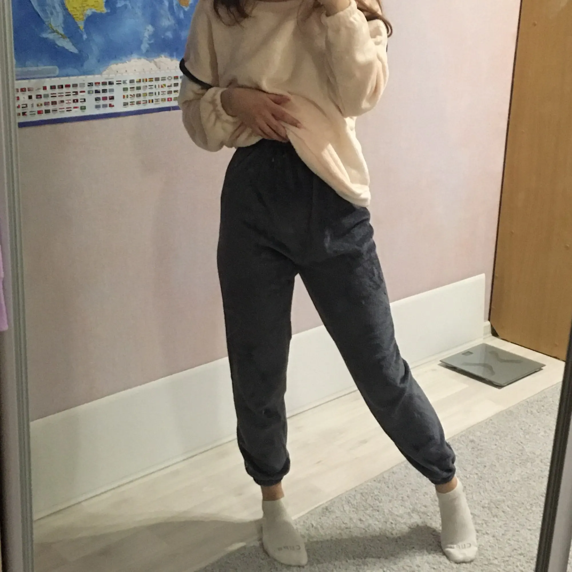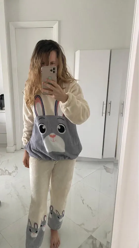 Очень пушистая и мягкая пижама, XL для 46-48 размера отлично. Продавец в подарок положил резиночку для волос.