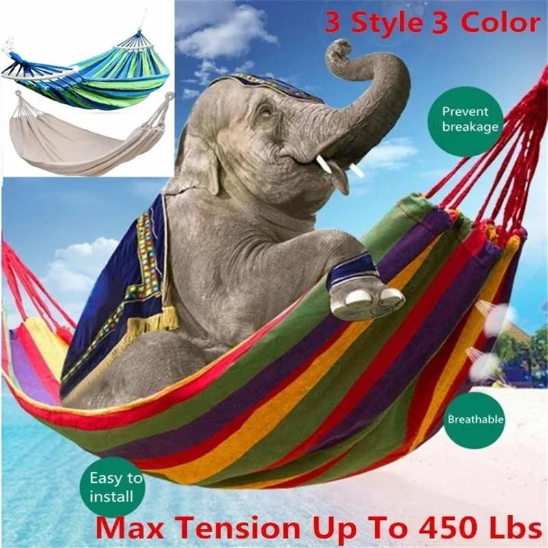Хлопковый гамак-наши гамаки для кемпинга изготовлены из специальной воздухопроницаемой ткани высокой плотности, изготовлены из материала, устойчивы к мнениям, приятны на вид и удобны на ощупь, одиночный и двойной гамаки способны выдерживать 530 фунтов