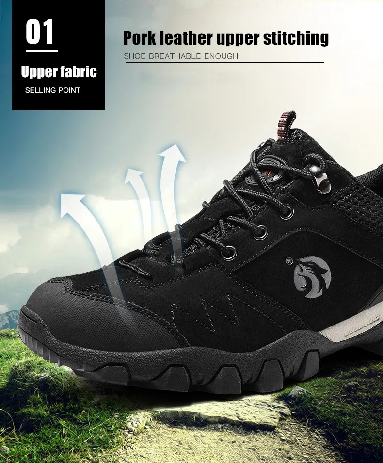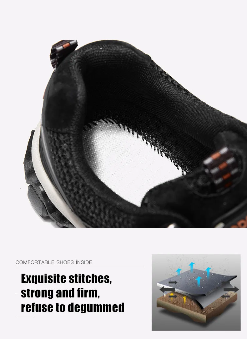 №: 1 Материал верха: кожа + сетка из лайкры Особенности: дышащий, удобный, высокое качество №: 2 конструкция защиты от столкновений может защитить пальцы ног и защитить безопасность подошвы. Технология последнего покрытия используется, чтобы сделать его более прочным, а внутренняя часть из хлопка дышащая и удобная. №: 3 материал подошвы: резиновая подошва + MD Функция: износостойкая, нескользящая, амортизирующая
