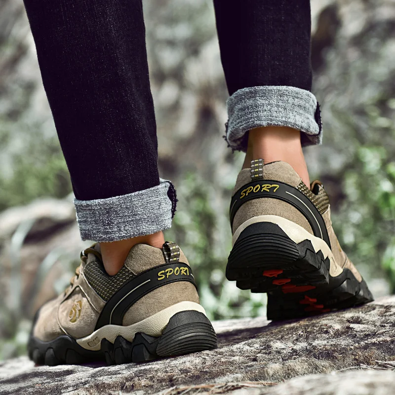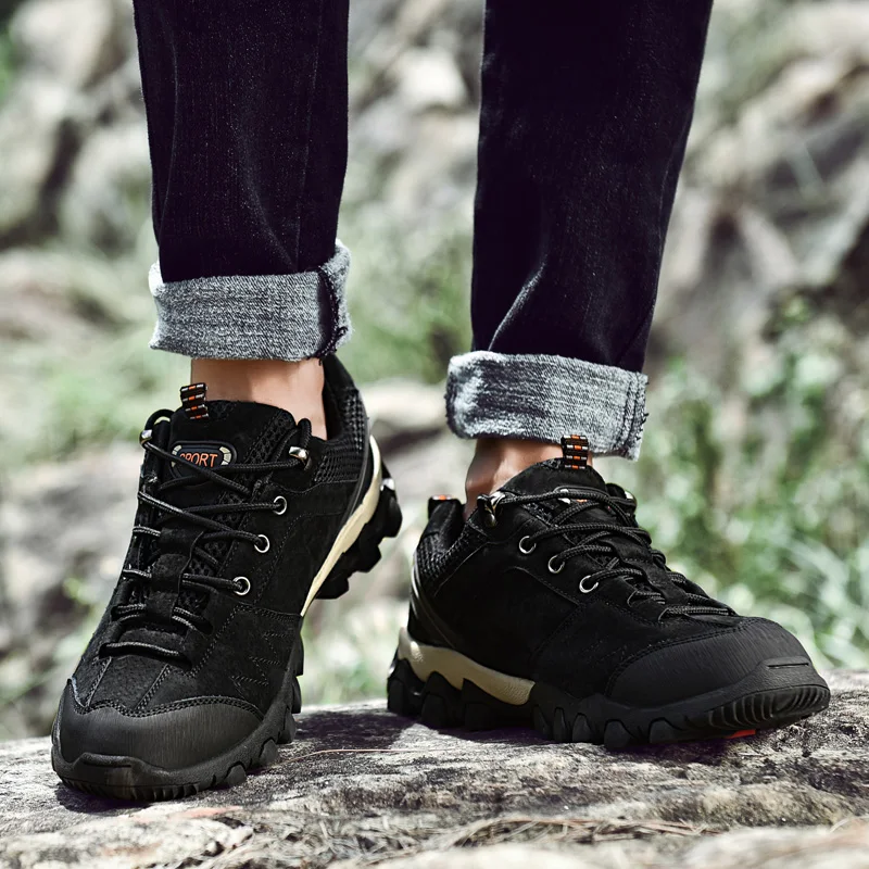 Мужские кроссовки из натуральной кожи, на шнуровке, дышащие, для походов и горных походов