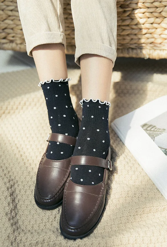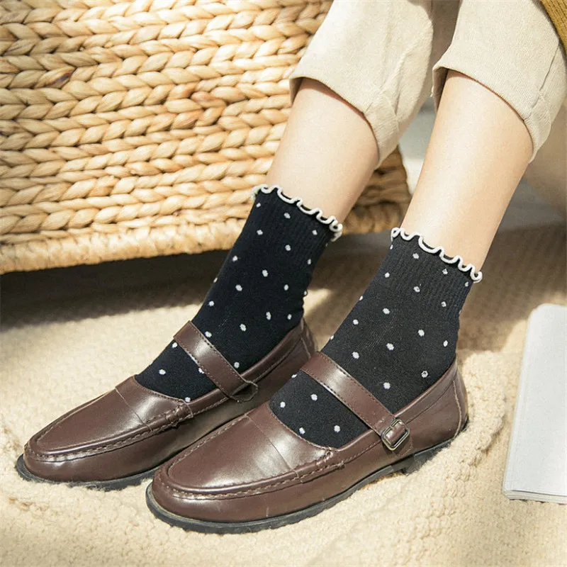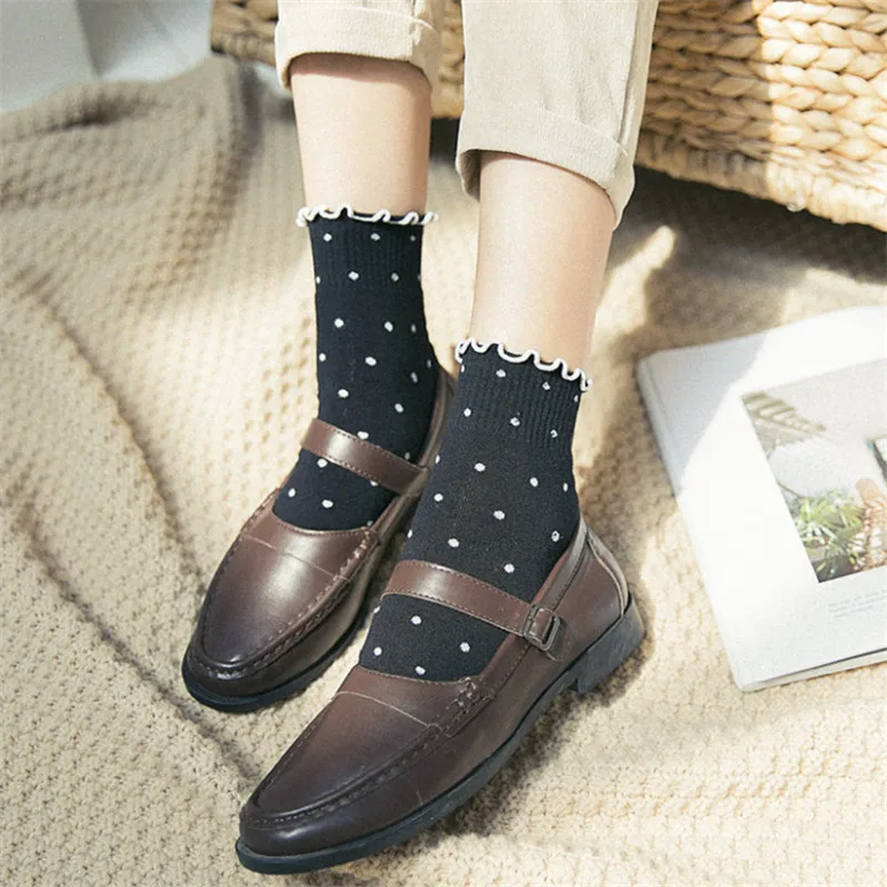 Носки с оборками и оборками kawaii, милые женские белые уличные хлопковые носки в Корейском стиле, calcetines de la mujer, женские носки