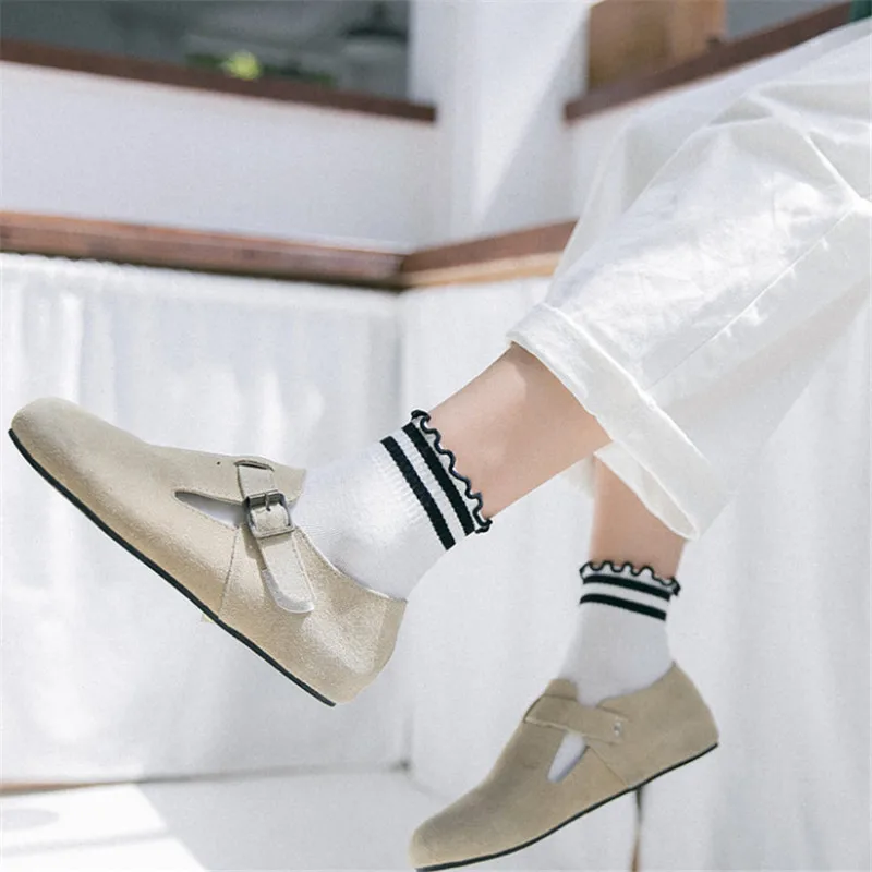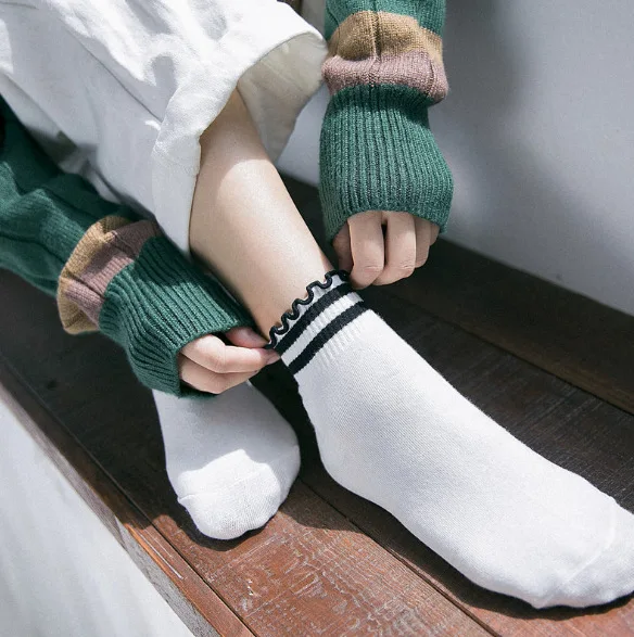 Носки frilly с рюшами, милые женские белые уличные носки в Корейском стиле, хлопковые носки для женщин, женские носки