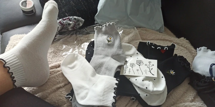 Очень классные приятные носки. Для размера 38 идеально подходит. Длина по щиколотку также идеально подходит для меня. Носки в наличии примерно через месяц после заказа. Когда вы заказываете 6 пар, продавец dorzucilar тату. Спасибо вам