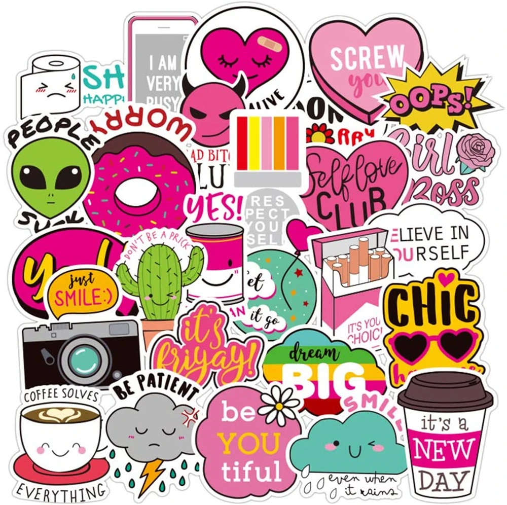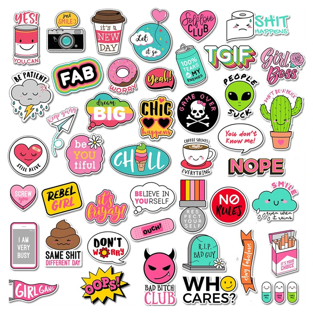 Наклейка VSCO Girl водостойкая для ноутбука, стикер для ноутбука, гидро колба, чемодан, камеры, гитара, компьютер, граффити, 44 шт.