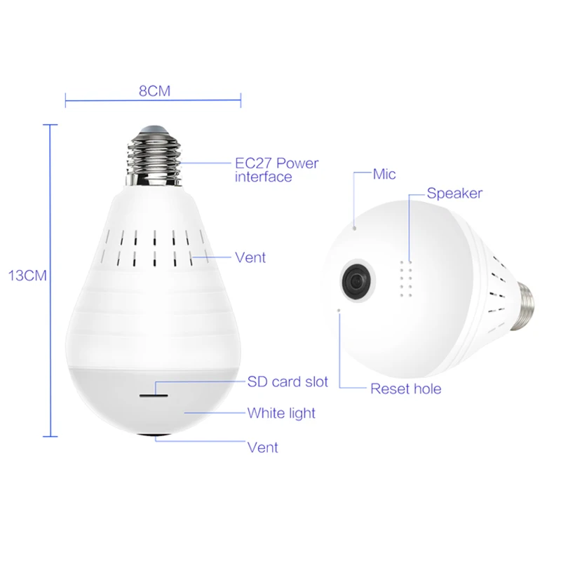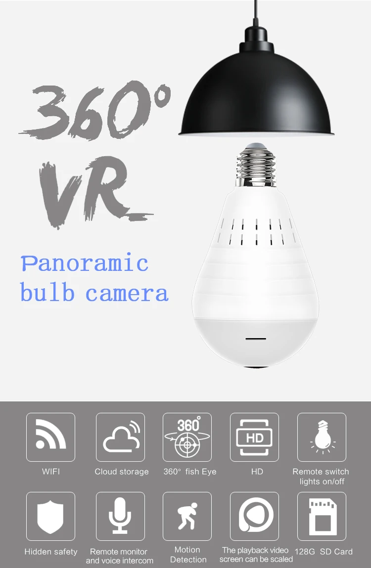 Беспроводная мини-камера HD Wi-Fi панорамная камера VR 360 панорамная камера рыбий глаз лампочсветильник для домашней безопасности Wi-Fi лампочка рыбий глаз