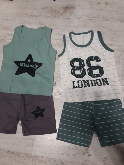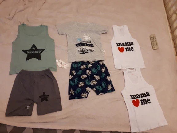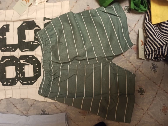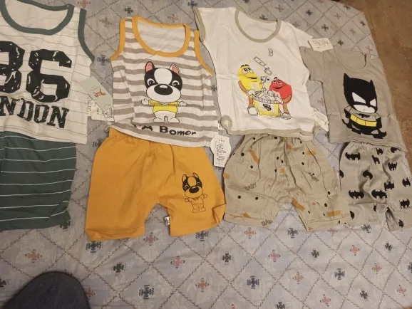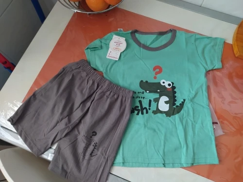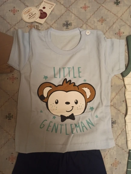 После стирки футболка немного растянулась вширь, стала на полненького малыша, стирала на 40 градусах, отжим 800 об. Качество материала футболки так себе, мягонькая тряпочка. А вот шортики классные. На лето или чтобы дома носить - можно брать. На третьем фото для сравнения футболка на 12 мес, которую сейчас носим.