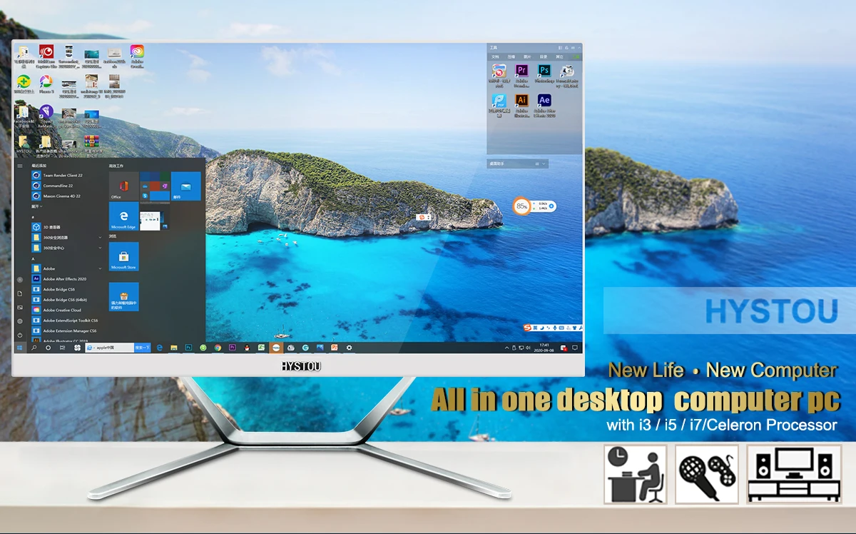 Моноблок HYSTOU, моноблок, компьютер Все в одном, 23,8 дюйма, процессор Intel Core i3 i5 i7 для игрового офиса