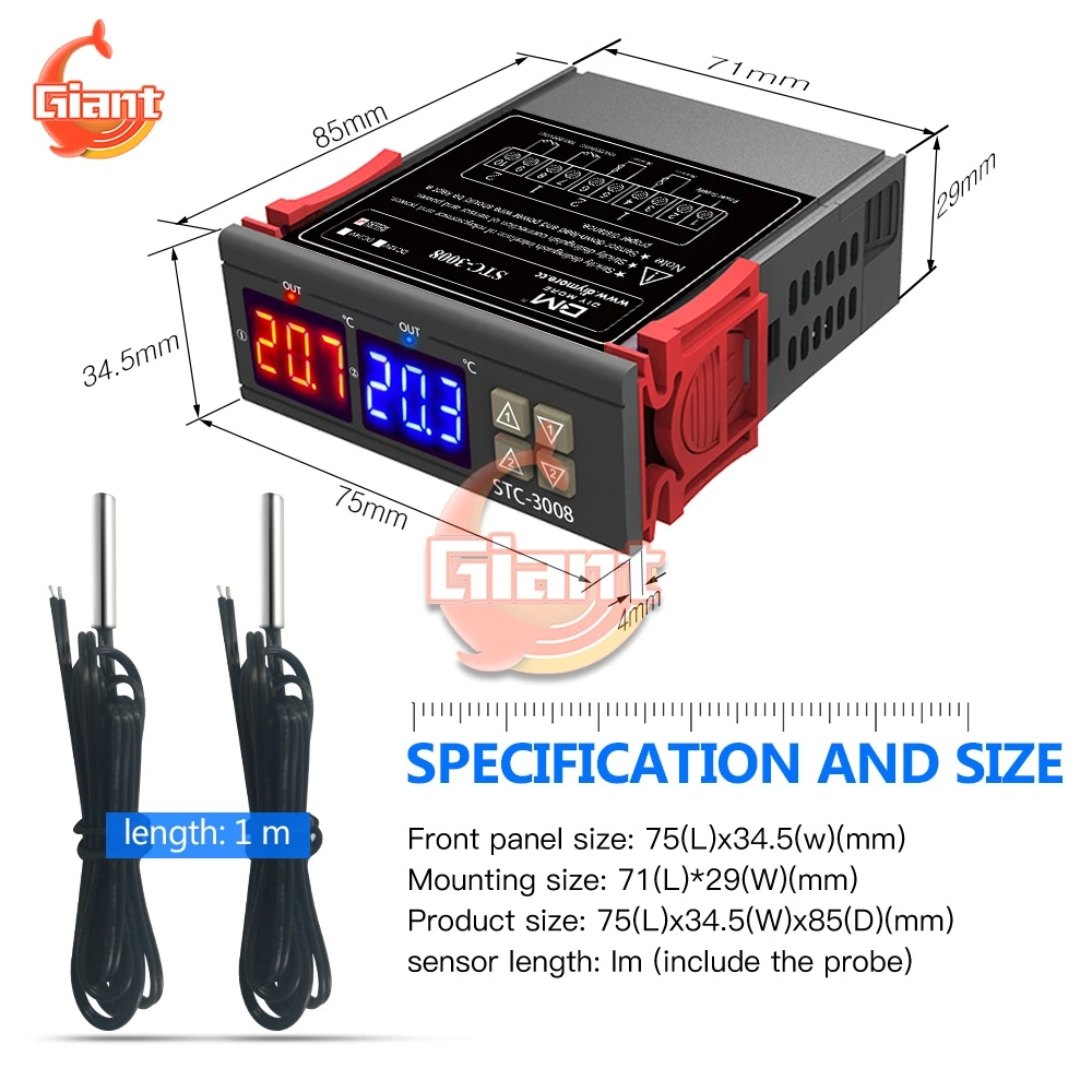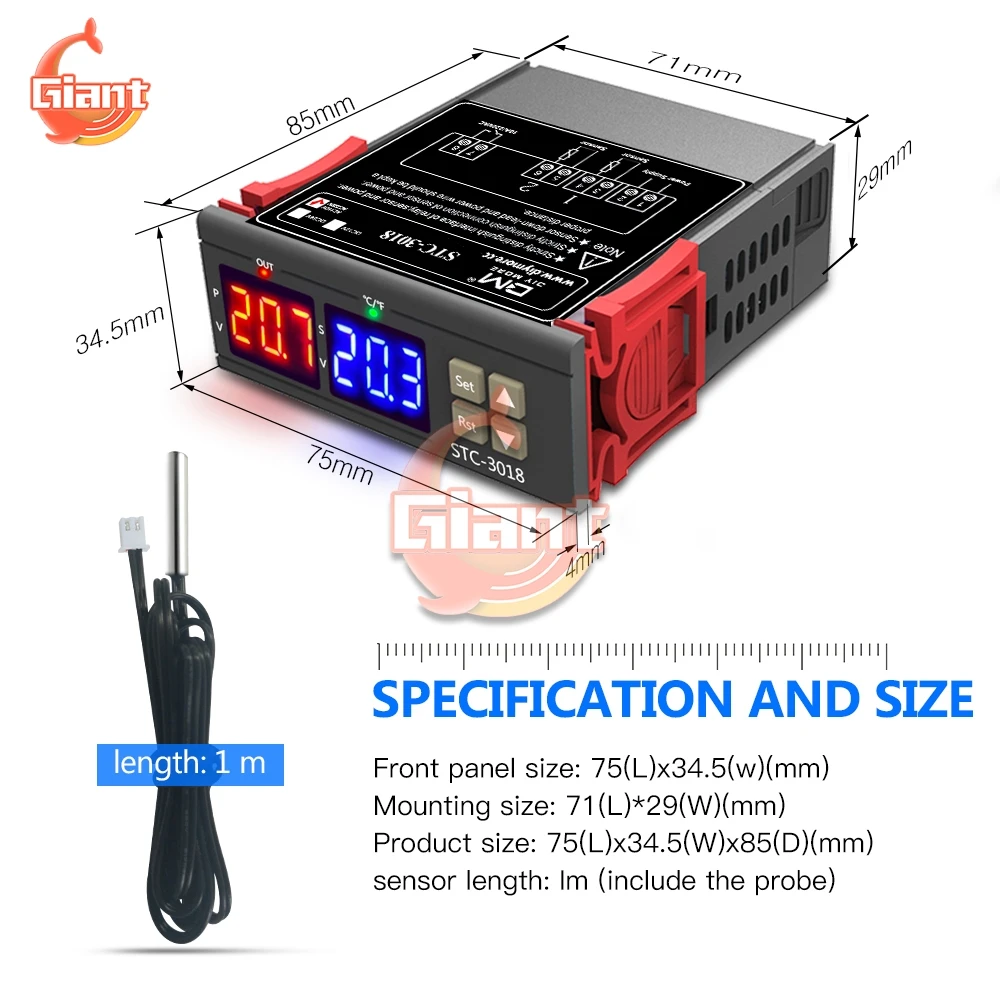 Цифровой термостат STC-3018 STC-3028 STC-3000 STC-3008, регулятор температуры и влажности, термометр, хрометр, 12 В, 24 В постоянного тока, 12 В, 72 В переменного тока, STC-1000 в, 110 В, терморегулятор для инкубатора, регулятор температуры и влажности, термостат с охлаждением, гигростат