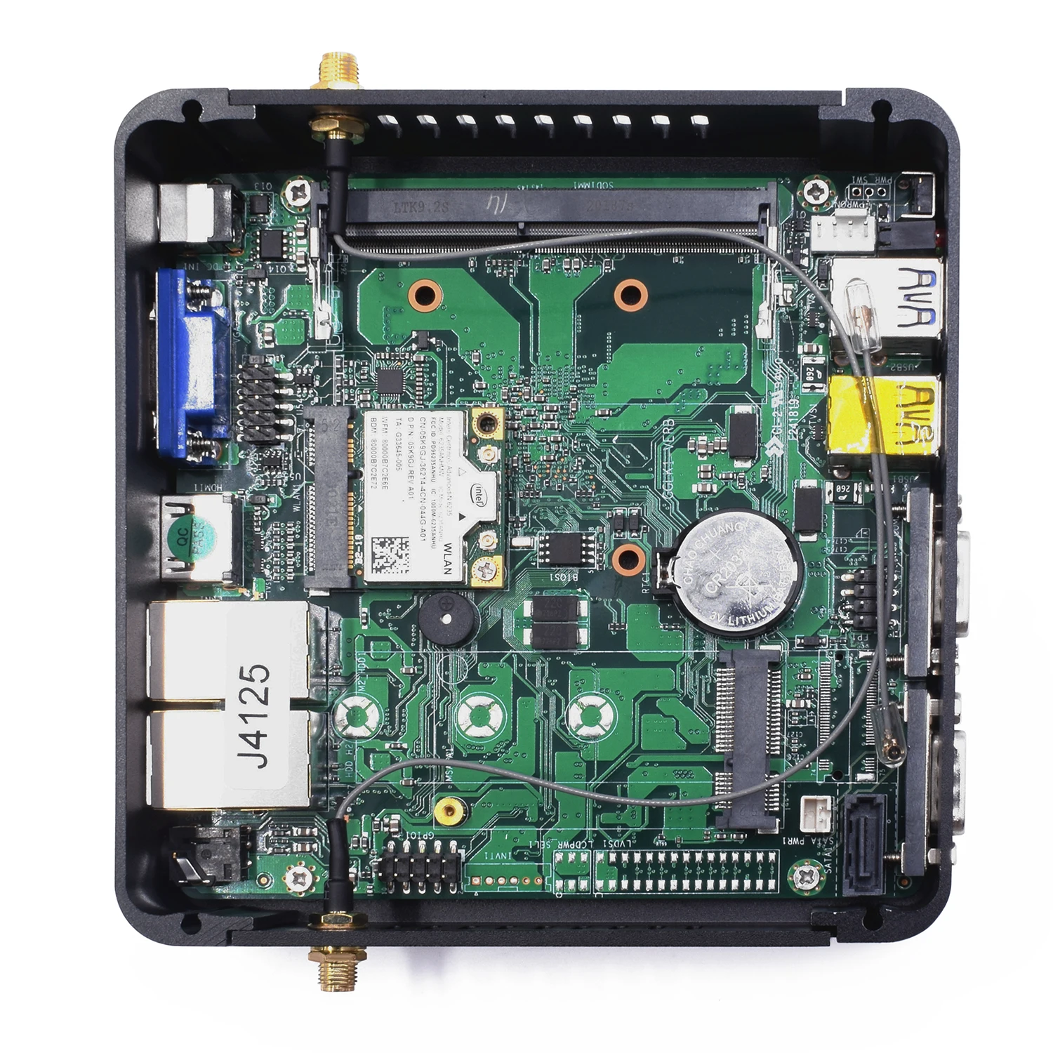 Мини-ПК настольный без вентилятора, четырехъядерный процессор Intel Celeron J4125 J4105 DDR4 2 гигабитная LAN RJ45 VGA серия портов, мини-сервер