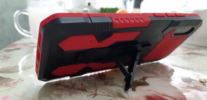 чехол хороший, противоударный, плотно сидит, не шатается, но я не заметил что сзади это не подставка а просто держатель на ремень, который в моем случае бесполезен, но этот держатель очень хорошо сидит, если его сильно растянуть он ляжет на место как и раньше