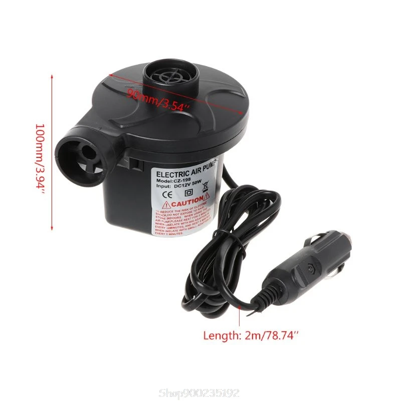 Источник питания должен быть автомобильного прикуривателя 12 вольт постоянного тока.Быстрое наполнение и высокое давление конструкции этого портативного электрического воздушного насоса для более быстрого и эффективного надувного опыта.Различные размеры сопла этого насоса могут соответствовать большинству надувных изделий, которые вам нужно надуть или сдуть.Наш воздушный насос удобен для упаковки и транспортировки.Небольшой размер этого электрического насоса покроет больше места для вас; Электрический насос воздушного матраса портативный для работы независимо от того, какой человек.Сдувайте и надувайте быстро для воздушного матраса, надувного бассейна, лодки, Каяка, дивана, купальных колец, игрушек для бассейна, мяча для йоги.Только воздушный насос/форсунки, другие аксессуары на фото не включены.Спецификация:Материал: АБС-пластик и металлЦвет: черныйРазмер воздушного насоса: app.100x90мм/3.94x3.54in(HxD)Длина линии вилки: см/787,40 дюймаМощность: 50 ВтКоличество: 4 шт./компл.Примечание:Перевод ед. измерения: 1 см = 10 мм = 0,39 дюймовВозможны отклонения в 0-1 мм вследствие измерений вручную. Пожалуйста, убедитесь, что вы не возражаете, прежде чем сделать ставку.Из-за разницы между различными мониторами изображение может не отражать фактический цвет изделия. Спасибо!Посылка включает в себя:1 x воздушный насос3 насадки