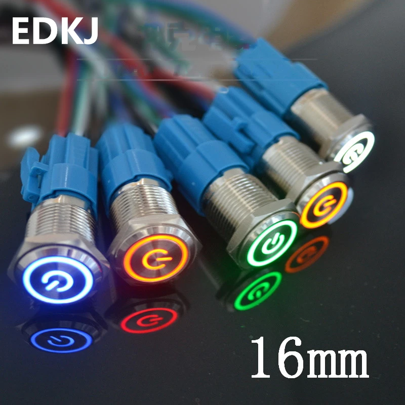 Мини круглая кнопка 5 цветов Водонепроницаемый самоблокирующийся кнопочный переключатель ВКЛ.ВЫКЛ. 16 мм 3-6 в 12 В 24 В 220 В кнопки для модификации автомобиля