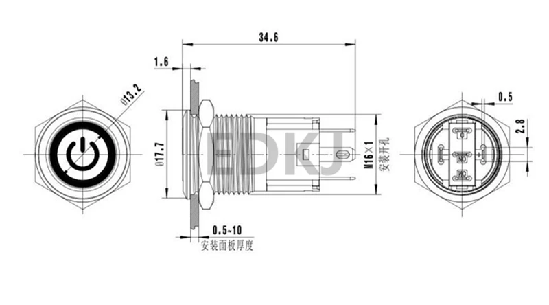 12 мм металлический кнопочный переключатель, водонепроницаемая Плос...